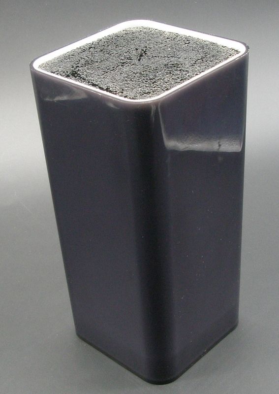Ce vase en plastique brillant des années 70, teinte chocolat, est composé d'un couche extérieure et d'une couche intérieure, remplie de petites baguettes bloquantes. Il peut recevoir de l'eau, et il vous permet d'agencer vos fleurs comme vous le souhaitez.