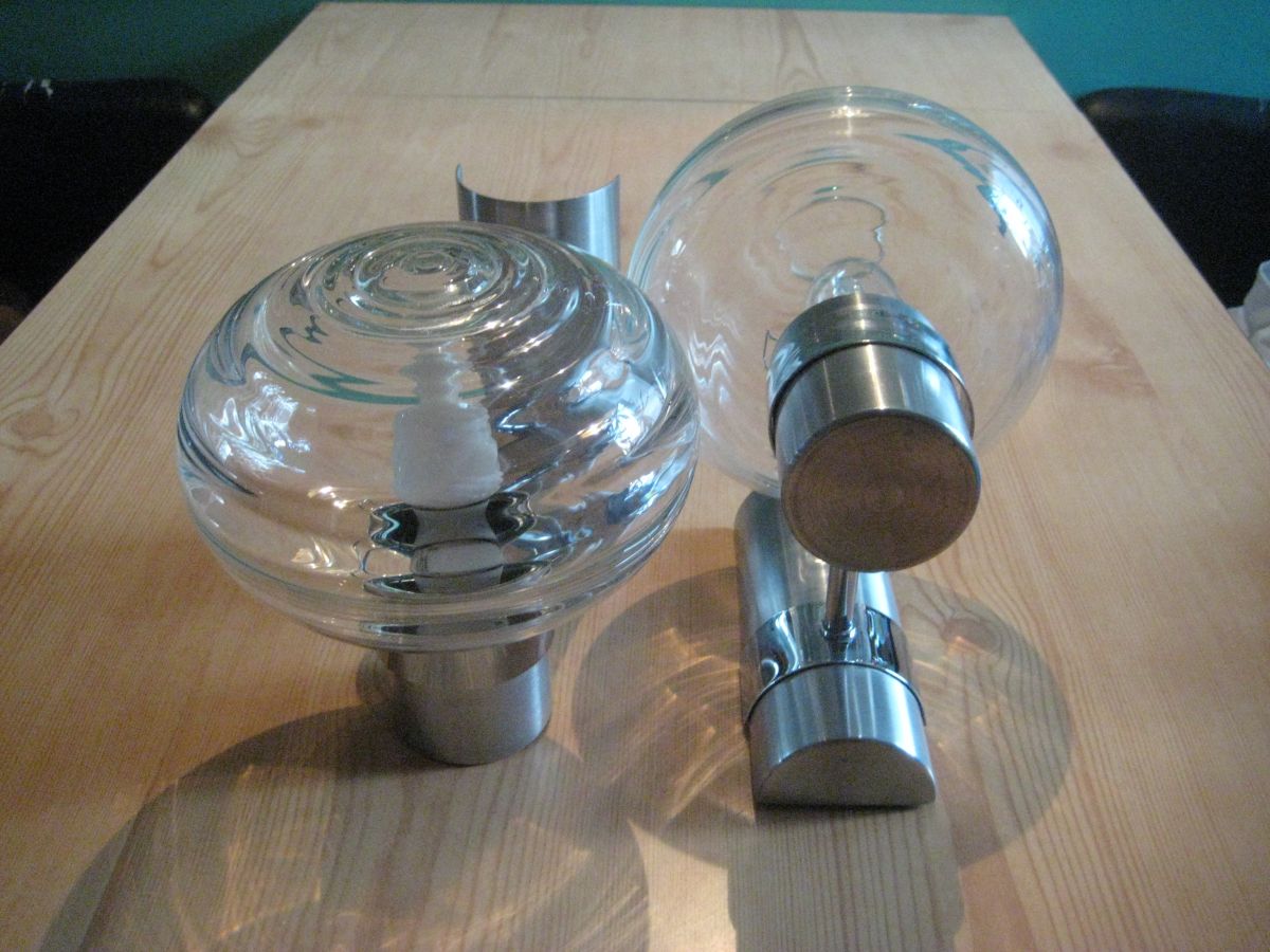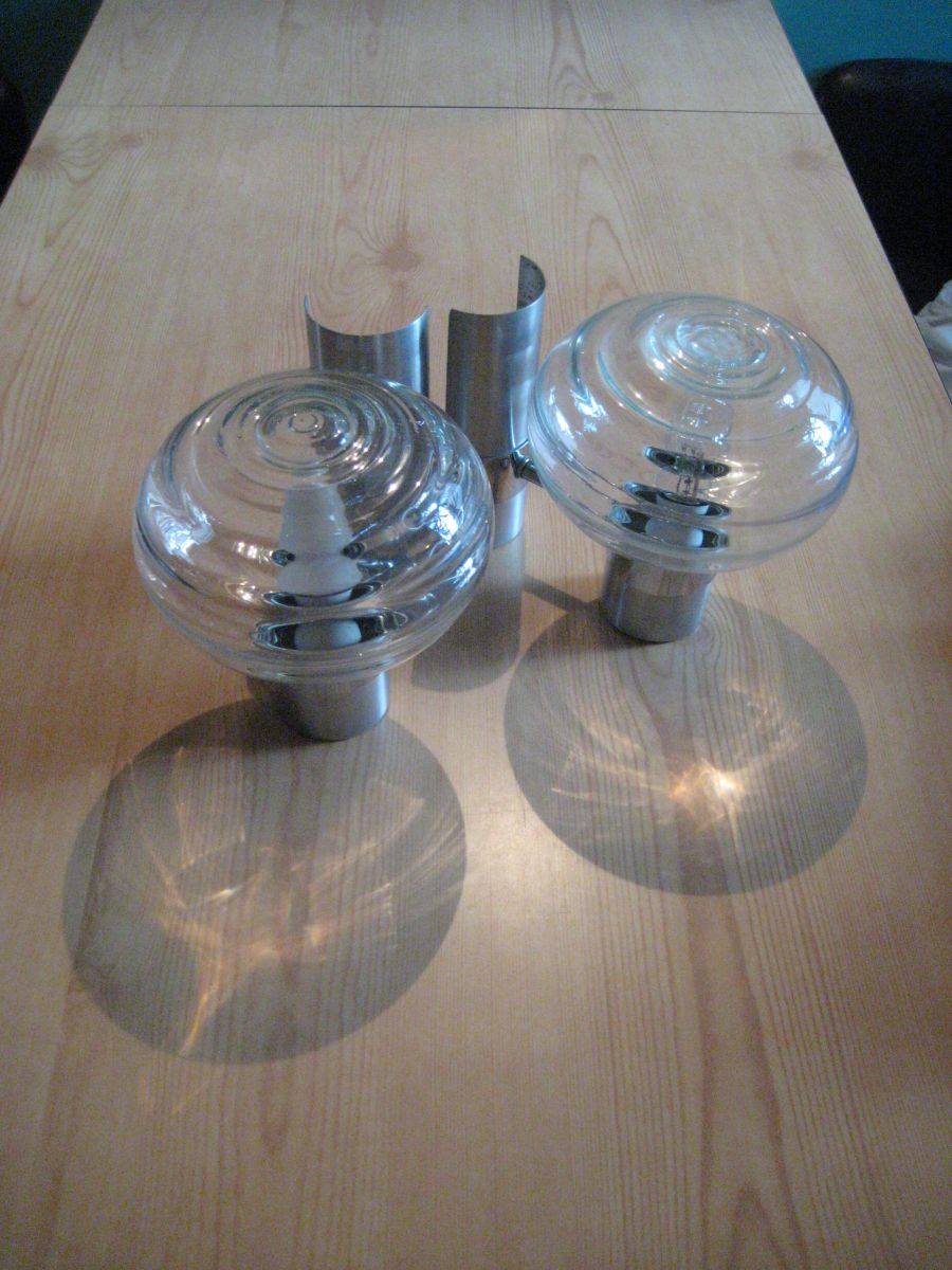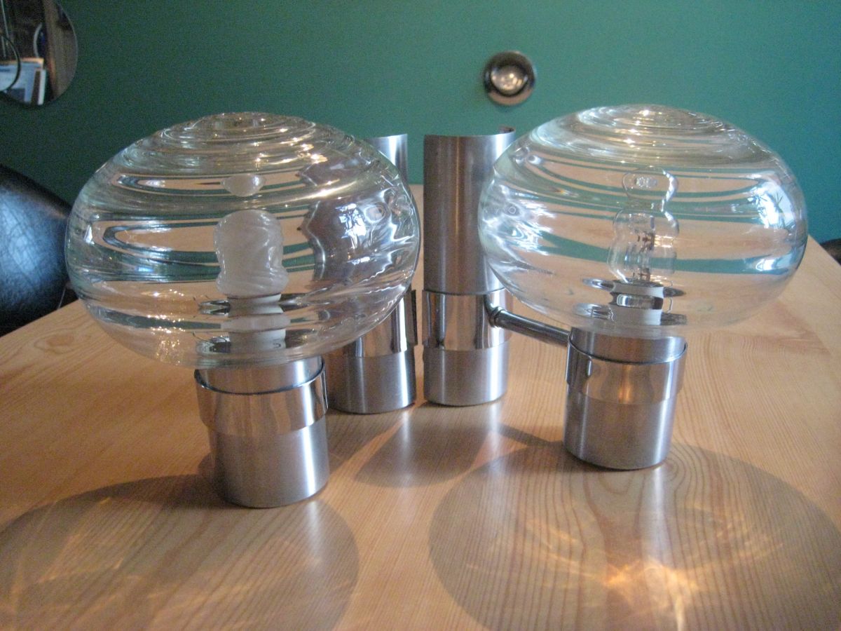 Paire d'apppliques vintage 70 design "Space age",aluminium, chrome et verre, non signé d'inspiration Gaetano Sciolari. État d'origine.TBE.