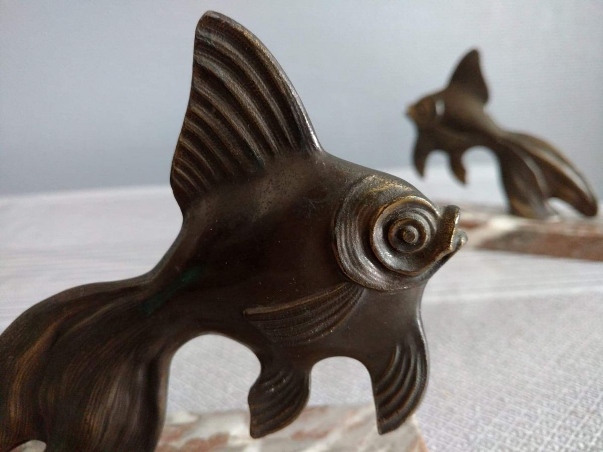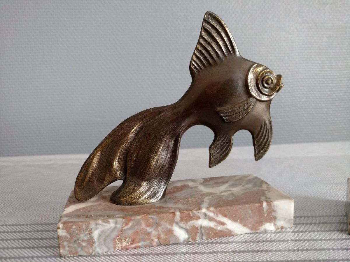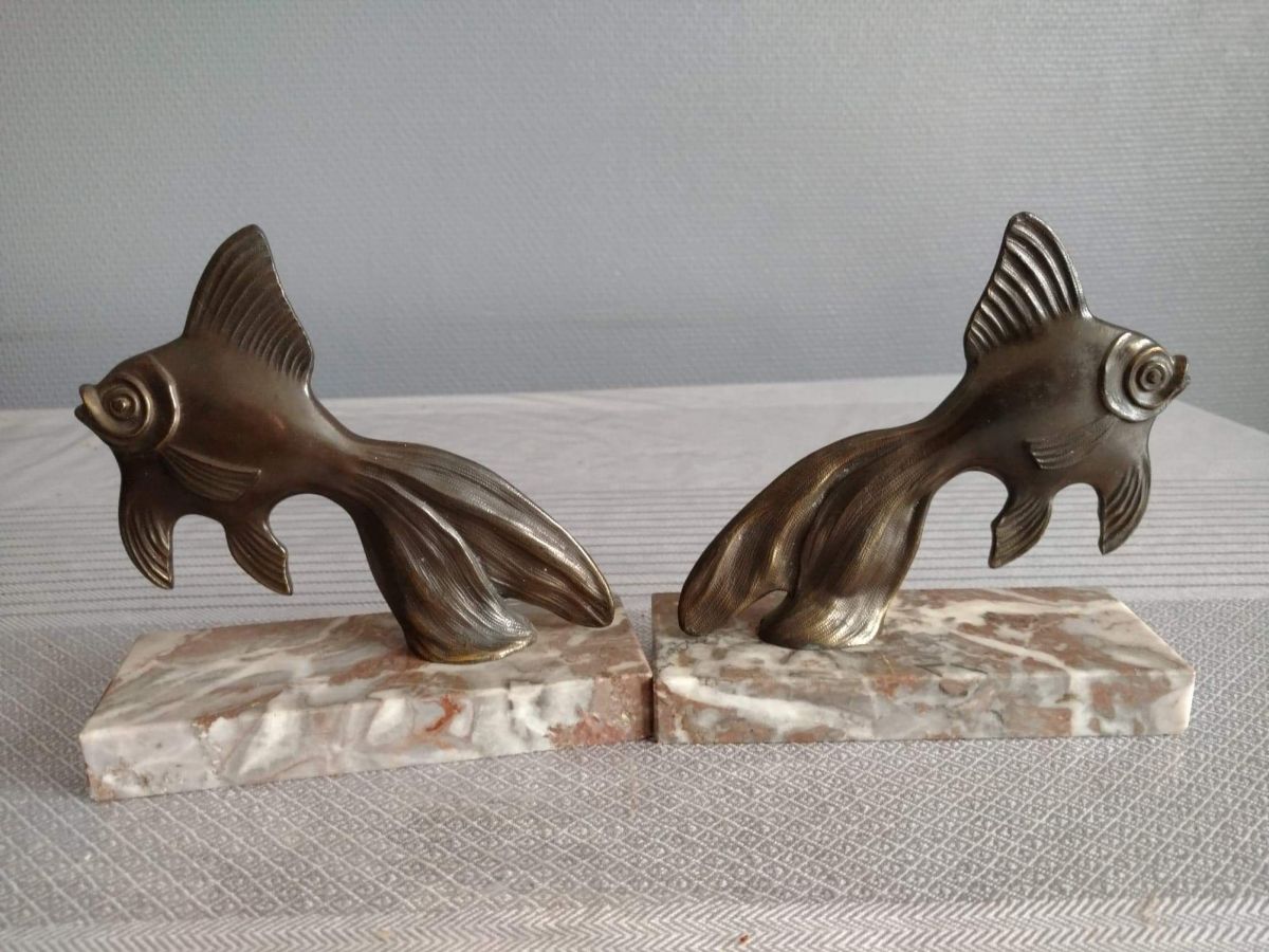 serre-livres poissons bronze et marbre art déco