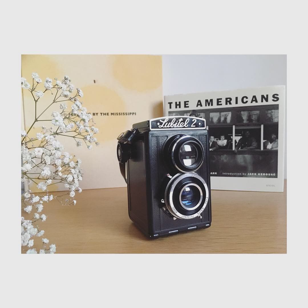 Ce très esthétique Lubitel 2 nous fait les yeux doux. C’est un appareil de type reflex bi-objectif moyen format. Il utilise des films 120 encore commercialisés.