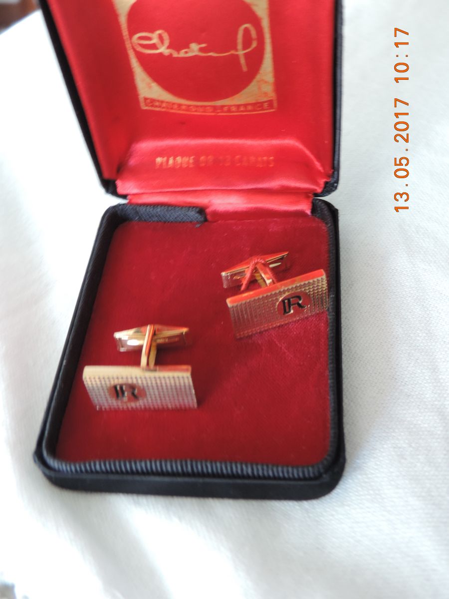 Paire de boutons de manchette en plaqué or dans son écrin, initiales R joliment gravé. Peu utilisé ,peuvent être utilisé ou pour collectionneurs...