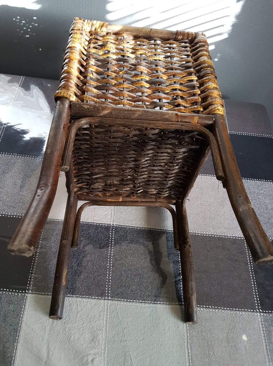 porte-plante carré en osier sur pieds vintage
