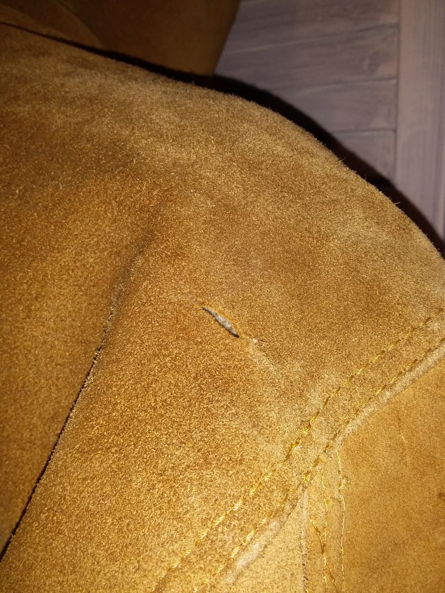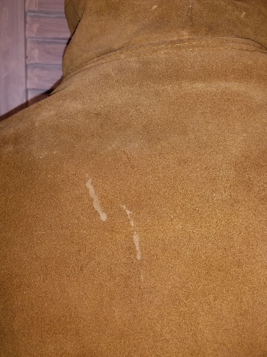 blouson aviateur peau retourné vintage marque mac douglas taille 54, elle a besoin d'etre brossée, quelques défauts dû à son vieil age, mais n'enleve rien à son charme. fermeture zip parfait état avec un revers permettant de proteger les vetements sous la fermeture éclaire. 4 poches exterieur. 1 poche interieur. la veste est un peu rigide car elle a été lavée, donc propre. unisex