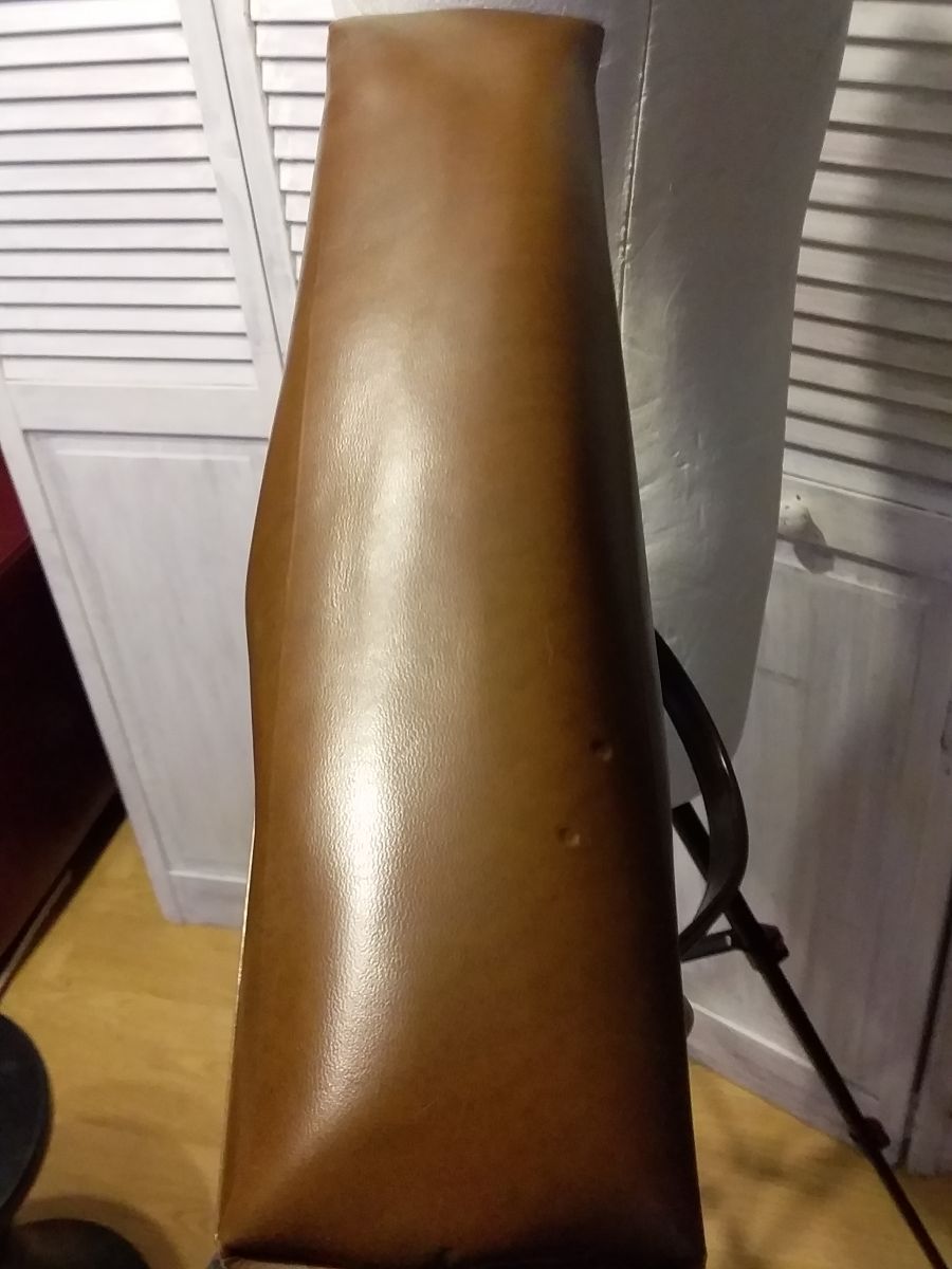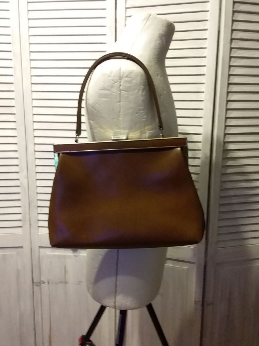 sac vintage assez grand et en trés bon état. simili cuir. avec une grande anse. fermoir à l'ancienne.L 32 H 22 P 8