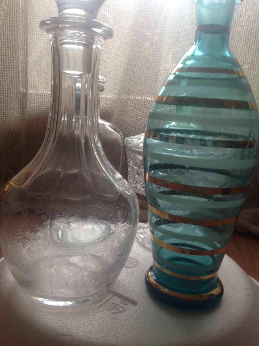 - une carafe avec bouchon 30 cms bandeau corps gravure