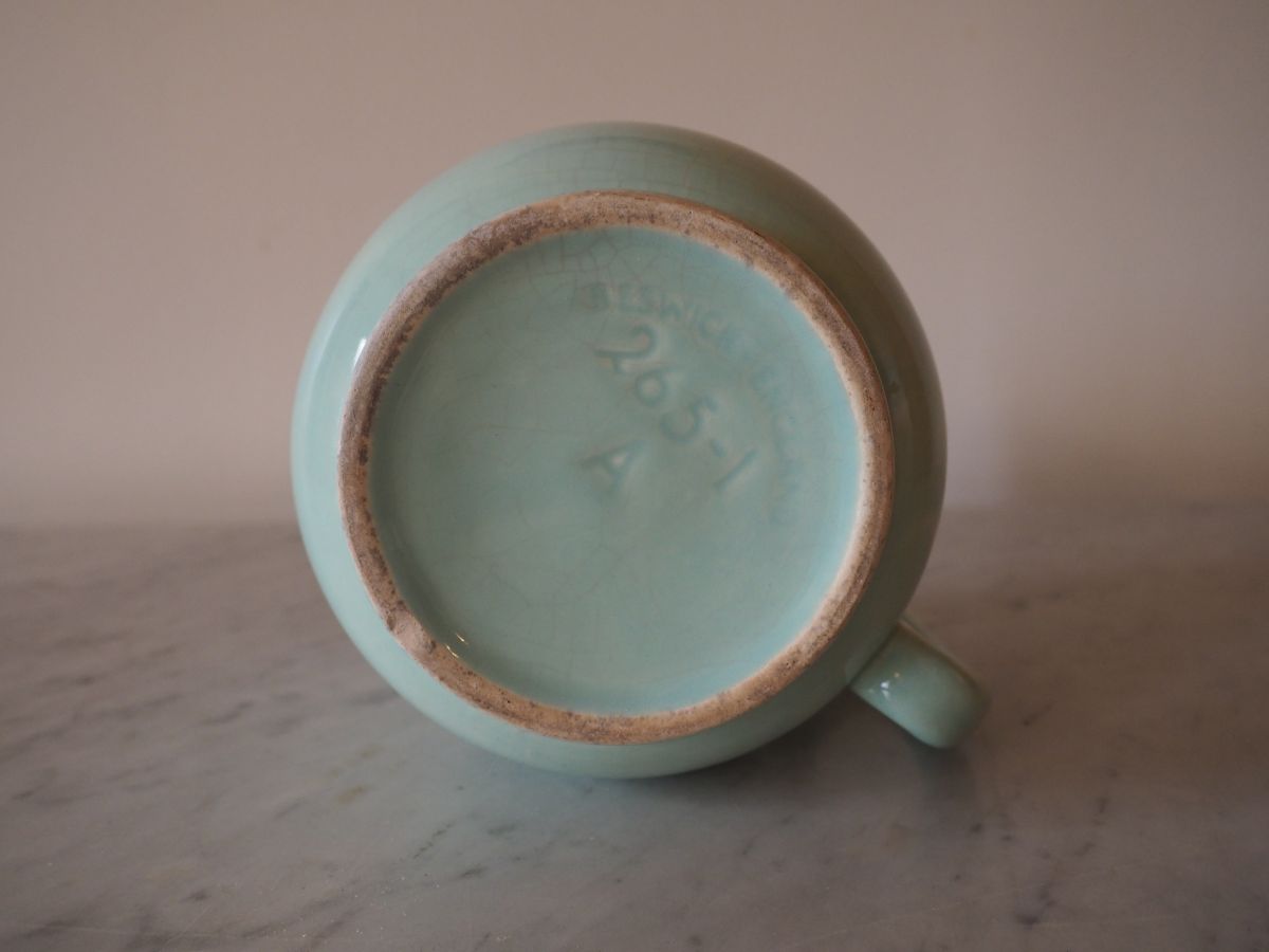Pot à eau vert céladon en porcelaine BESWICK ENGLAND, petit éclat au niveau du bec