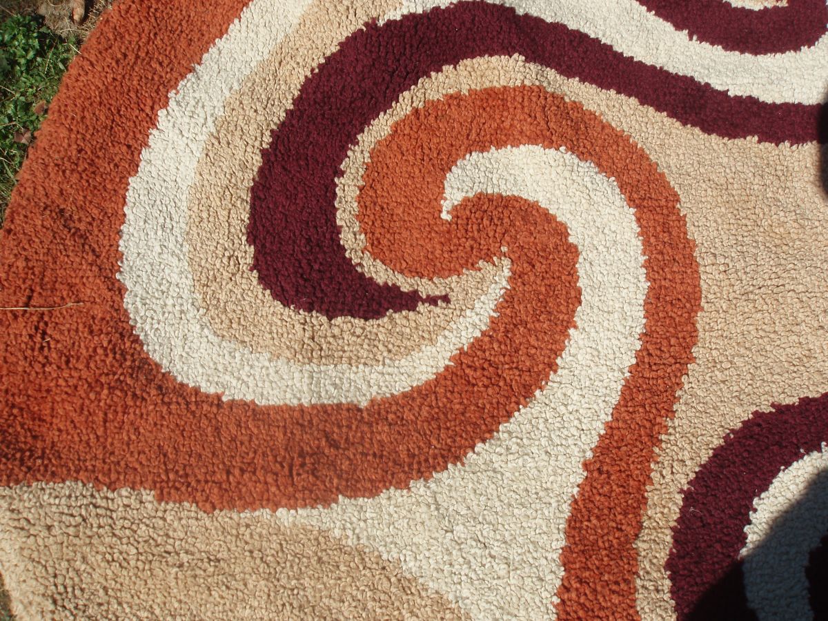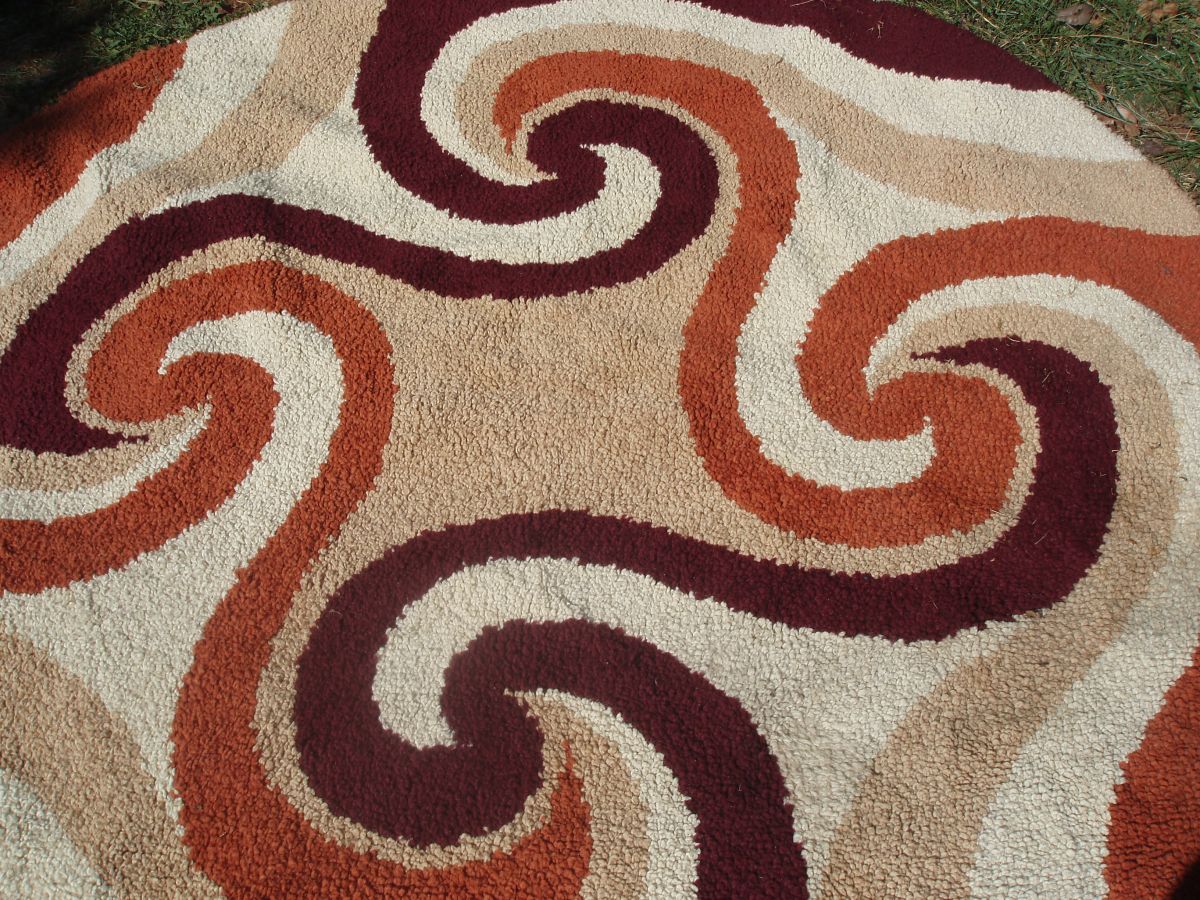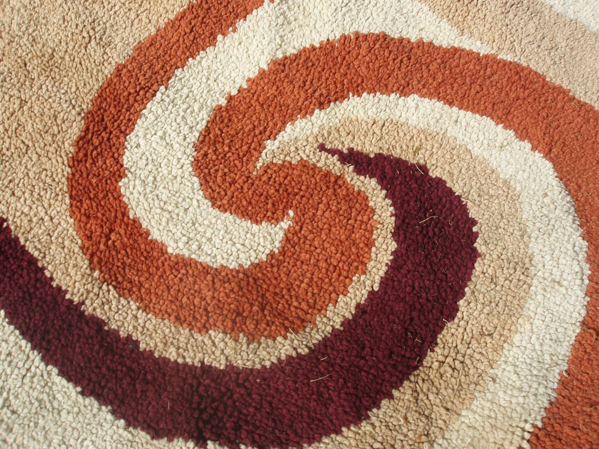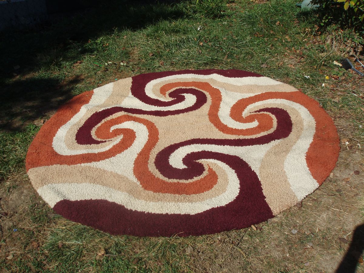 Ce beau tapis rond est caractéristique des années 70 avec ses couleurs multicolores.