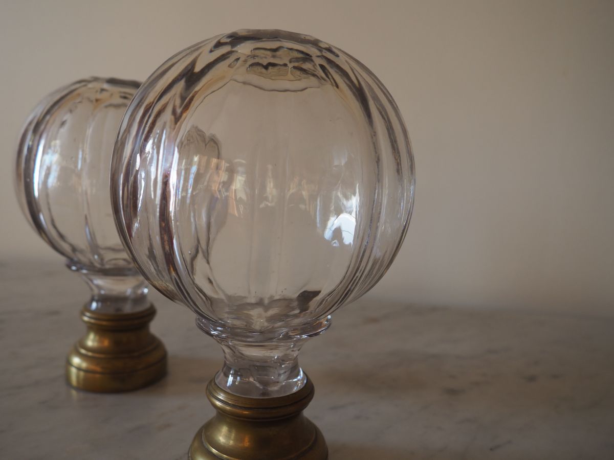 Boule d’escalier de collection en Baccarat à facettes et pied en laiton, avec sa platine. XIXe siècle
