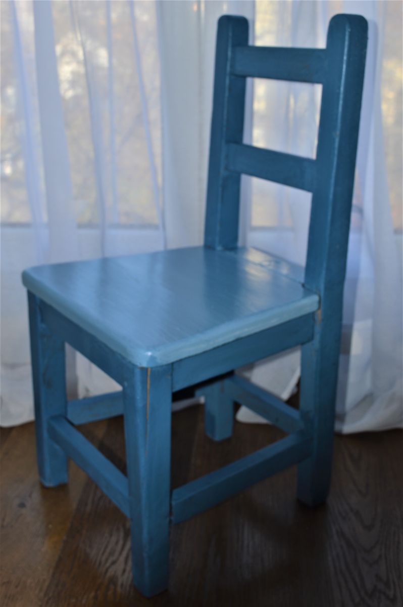 Chaise de charme pour enfant vintage en bois de chêne (bicolore bleu clair et bleu roi)