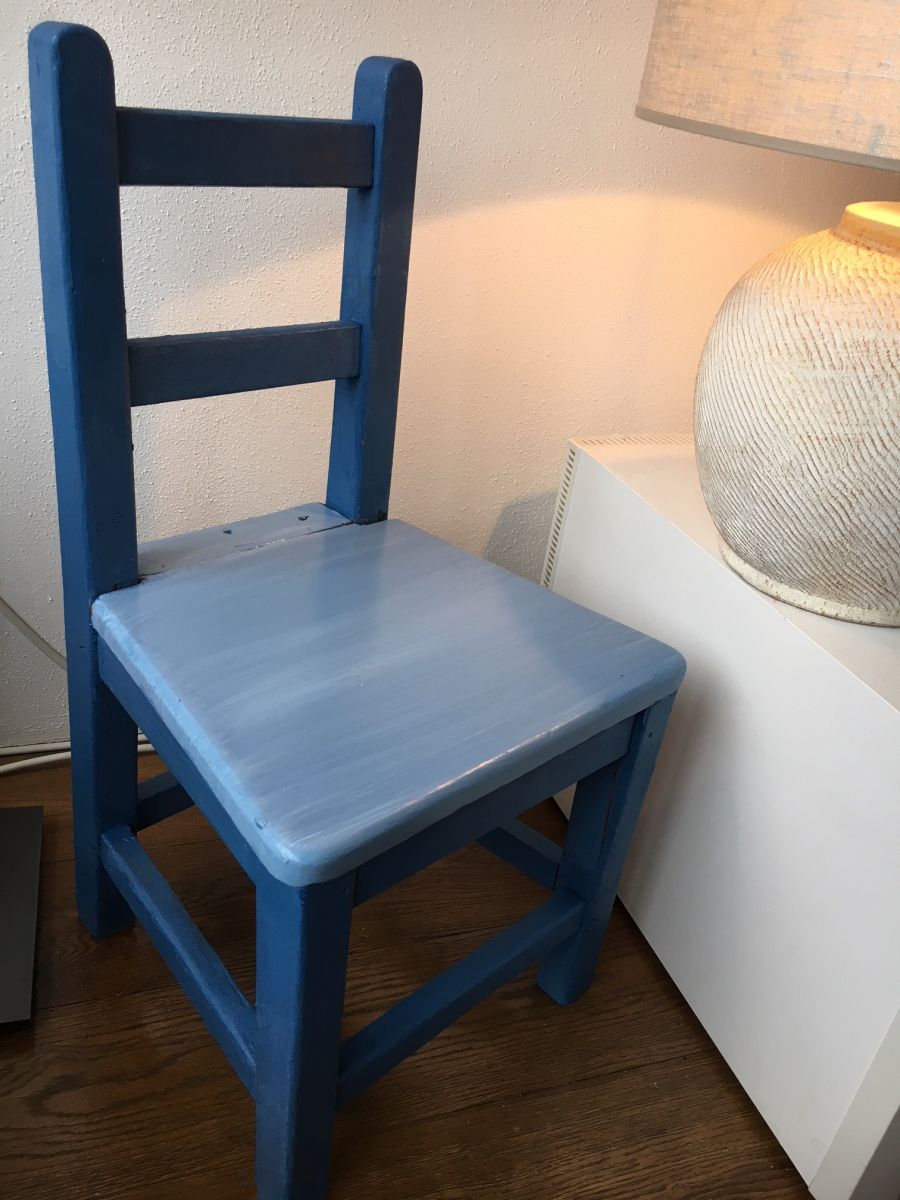 Chaise authentique et extrêmement stable.Poncée et repeinte à neuf.