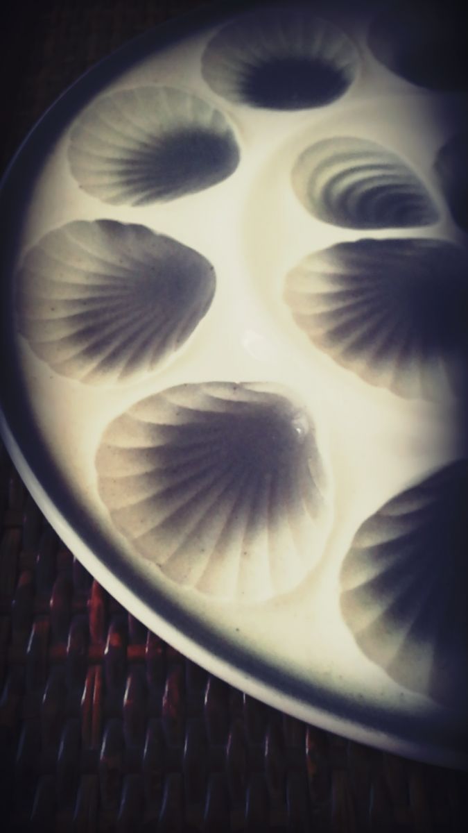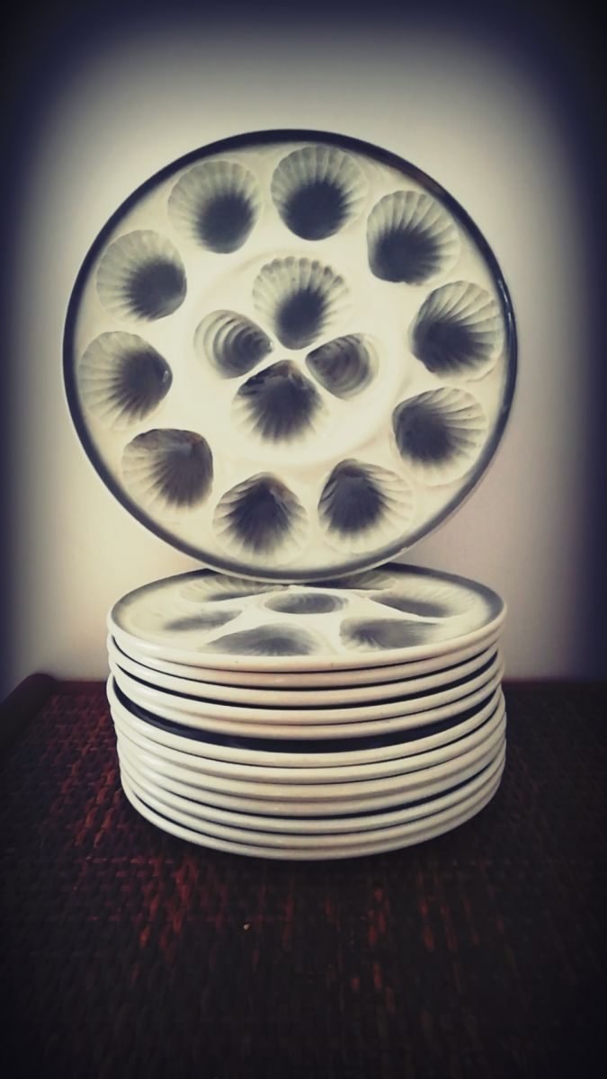 Service à huîtres de la célèbre faïencerie Française Moulins des Loups. Collection orchies.