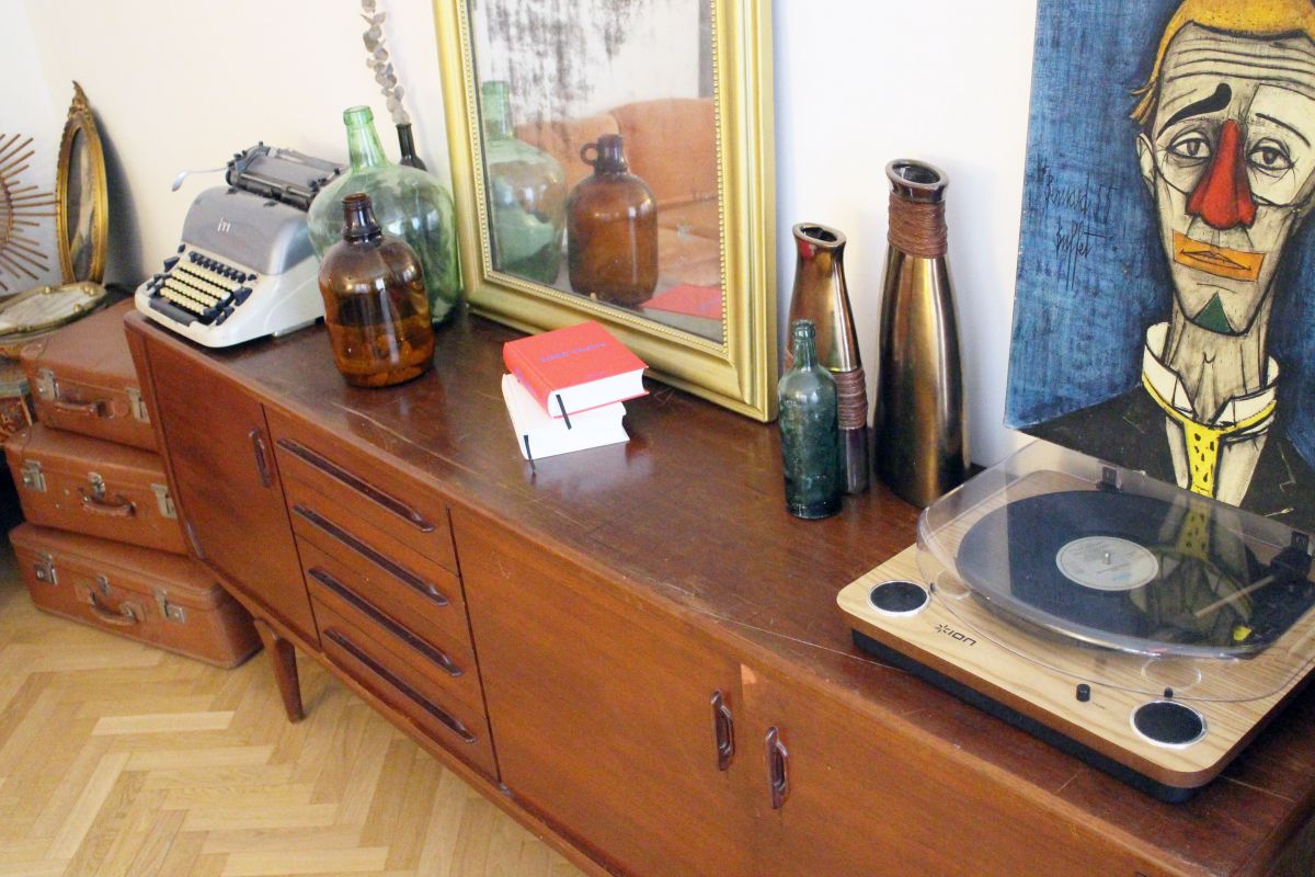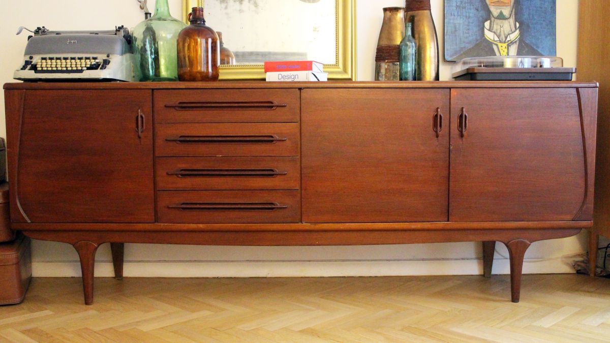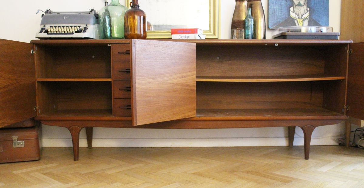 Longue Enfilade vintage pieds compas 1950/60 bois massif