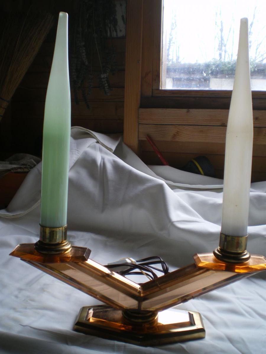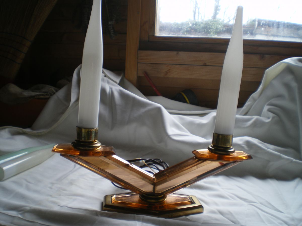 3 options, soit avec grandes bougies en verre blanche et verte, soit avec deux autres bougies en verre blanches mais dont l'une est abimée en bas mais sans incidence sur le maintien et la vision, soit sans bougies avec réduction du prix de 10 euros.
