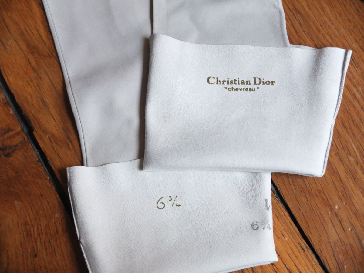 Longs gants de soirée neufs, Christian Dior, gris perle, en chevreau.