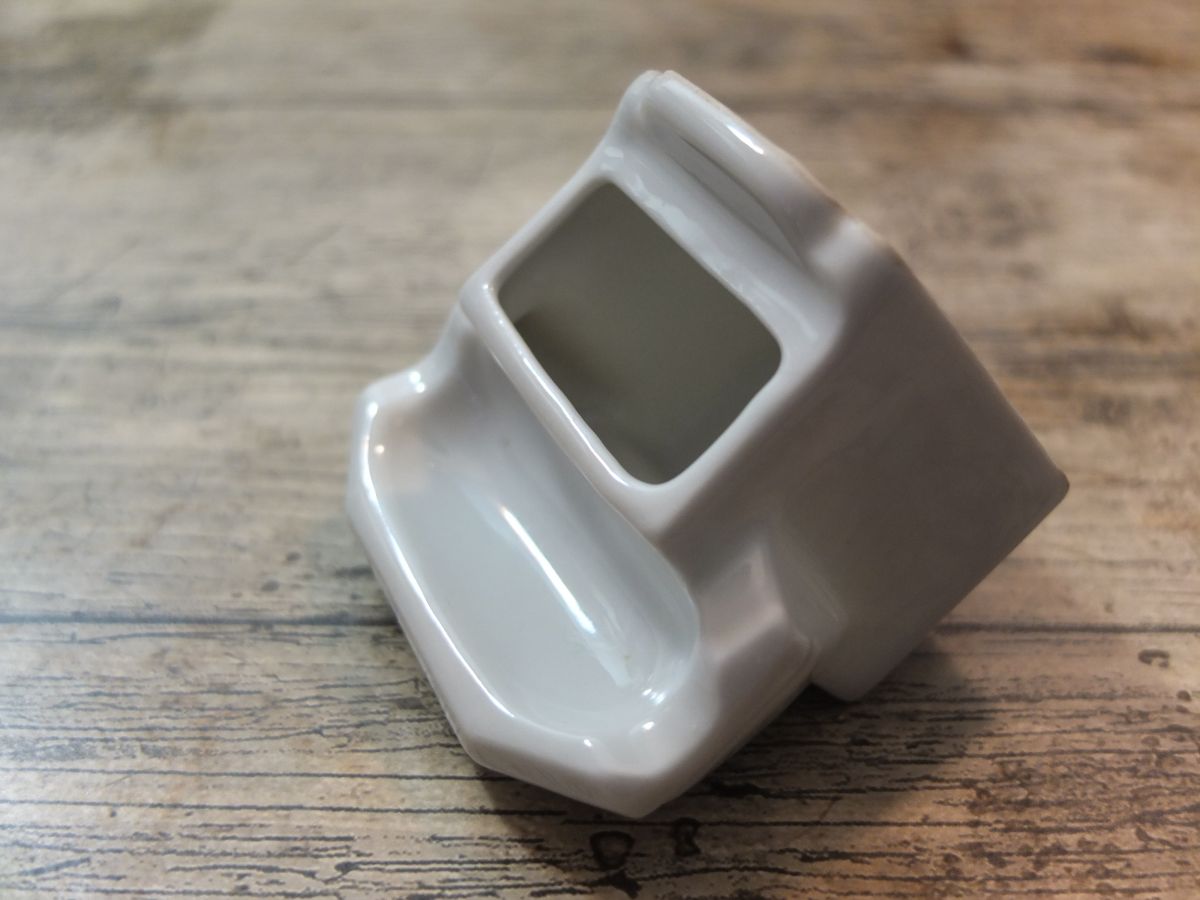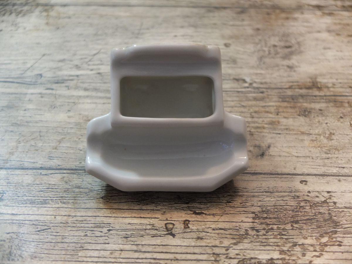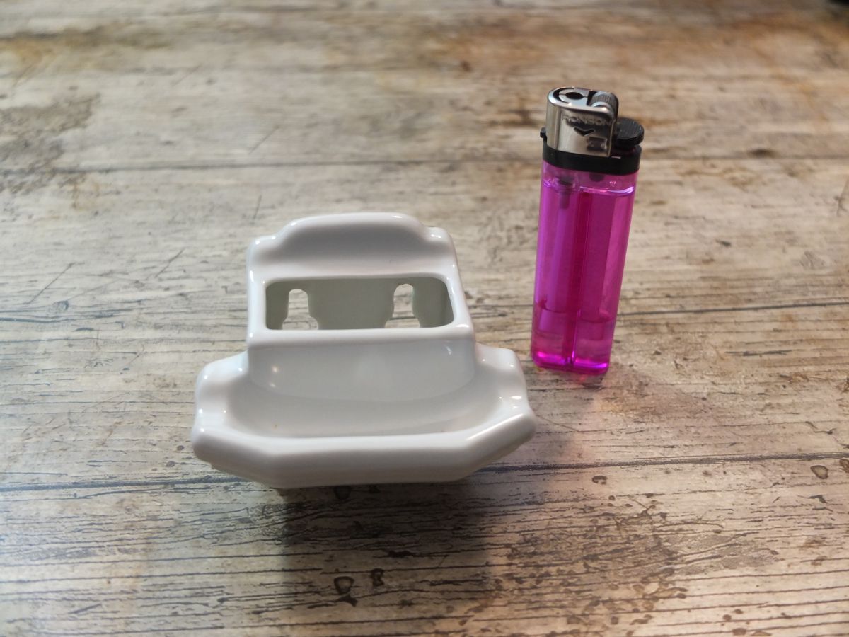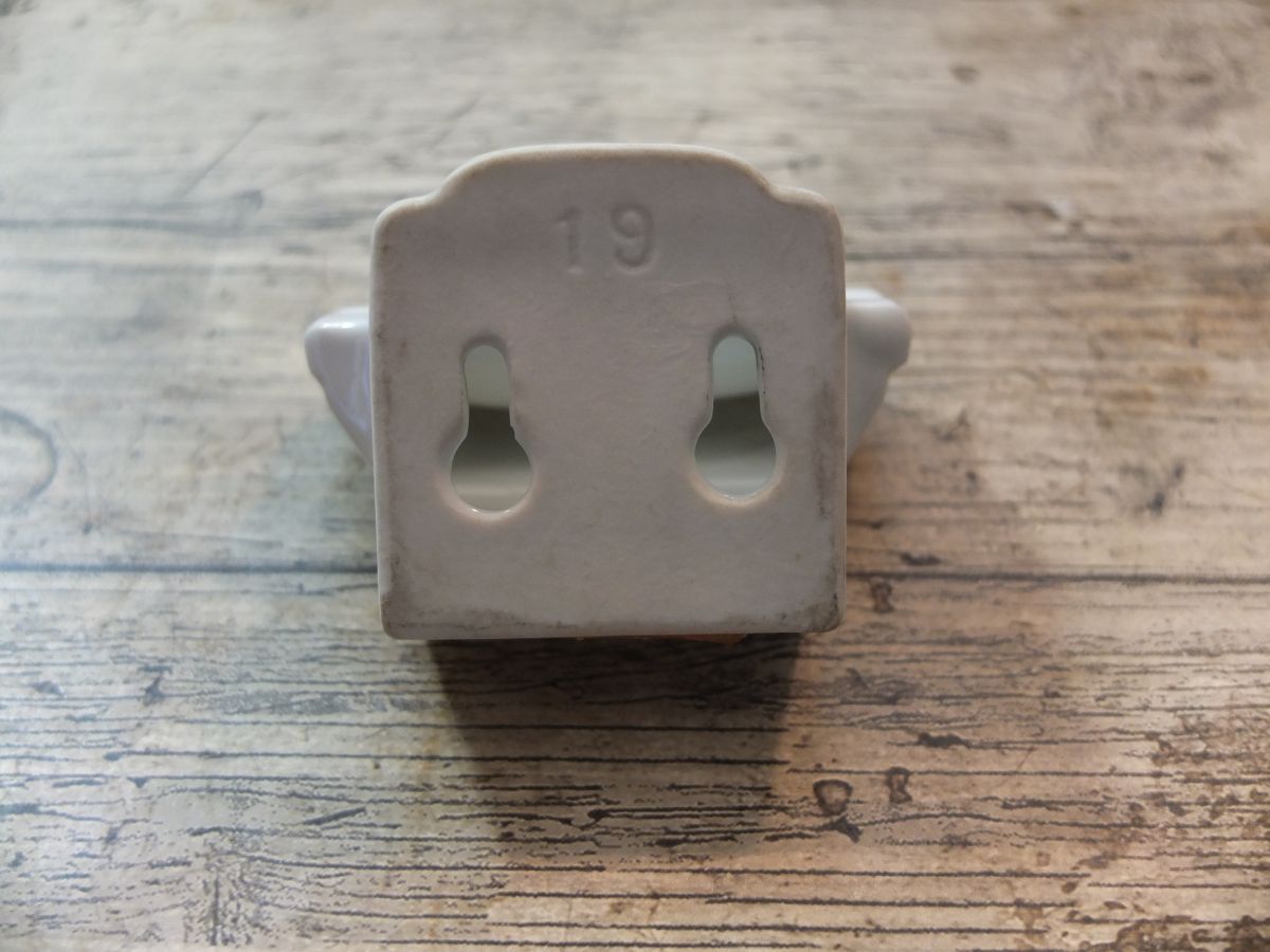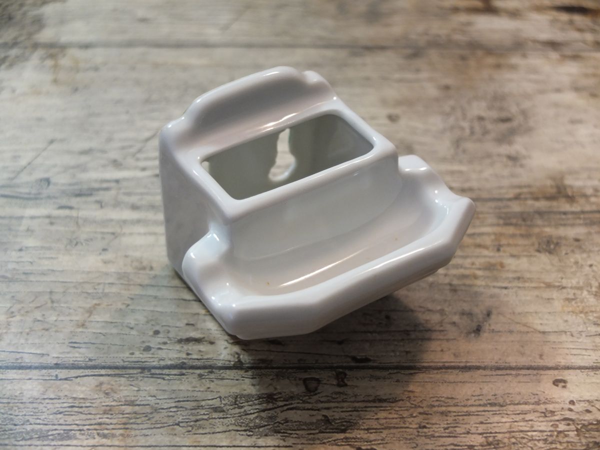 Cendrier mural en porcelaine blanche, comportant 2 encoches pour la fixation.