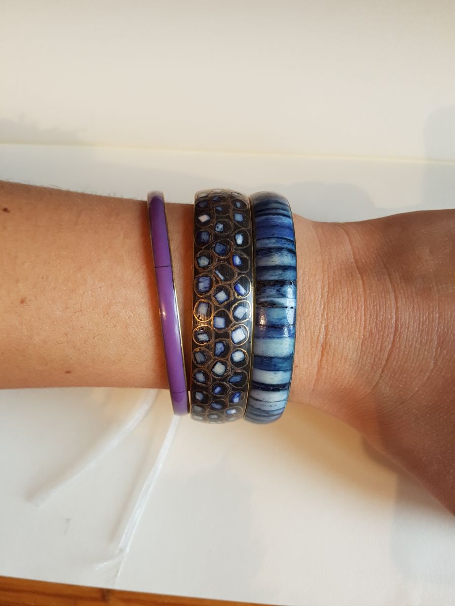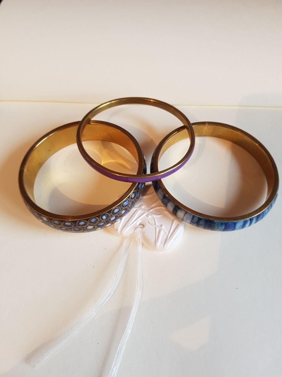 3 bracelets vintage en métal doré, diamètre 65 mm.