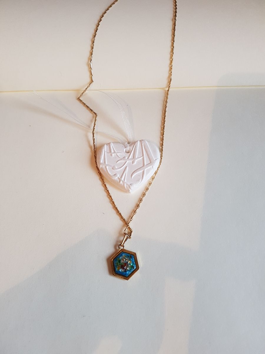 Collier de famille en plaqué or ( poinçon carré mais plus très lisible ) avec pendentif. Longueur 30.5 cm.