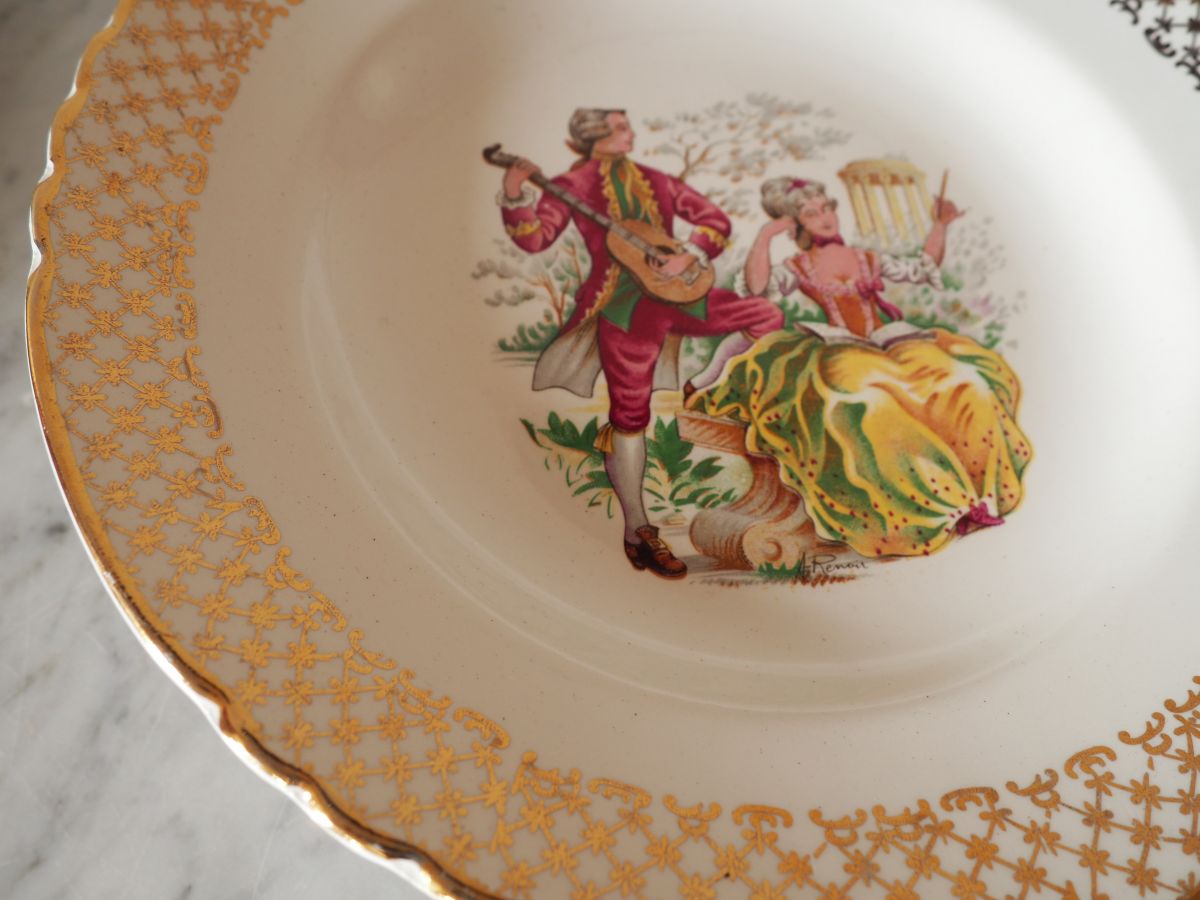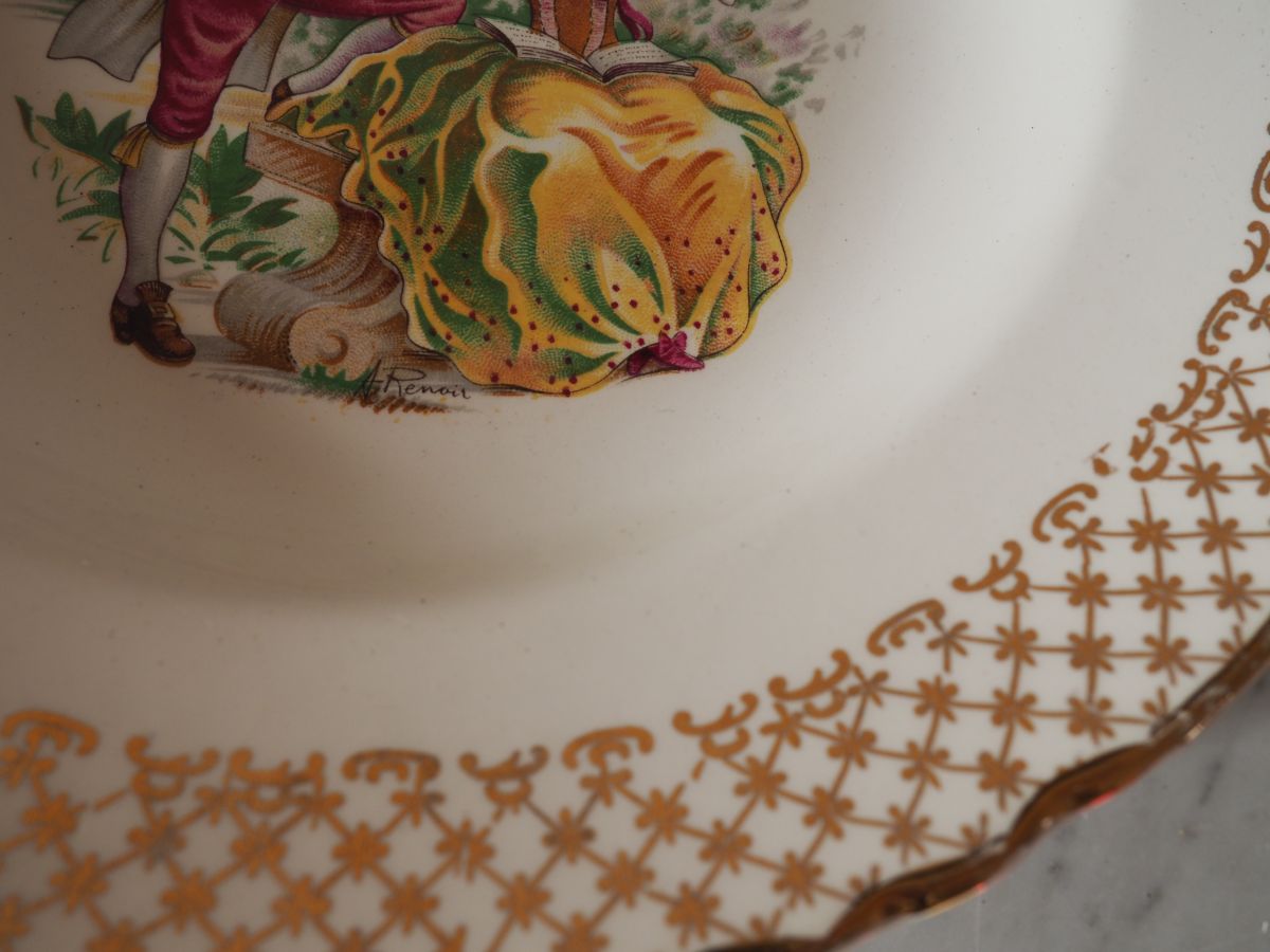 Lot de 6 assiettes creuses Moulin des Loups Orchies, signées A.Renoir, tamponnées au dos. 6 décors différents pour 6 assiettes.