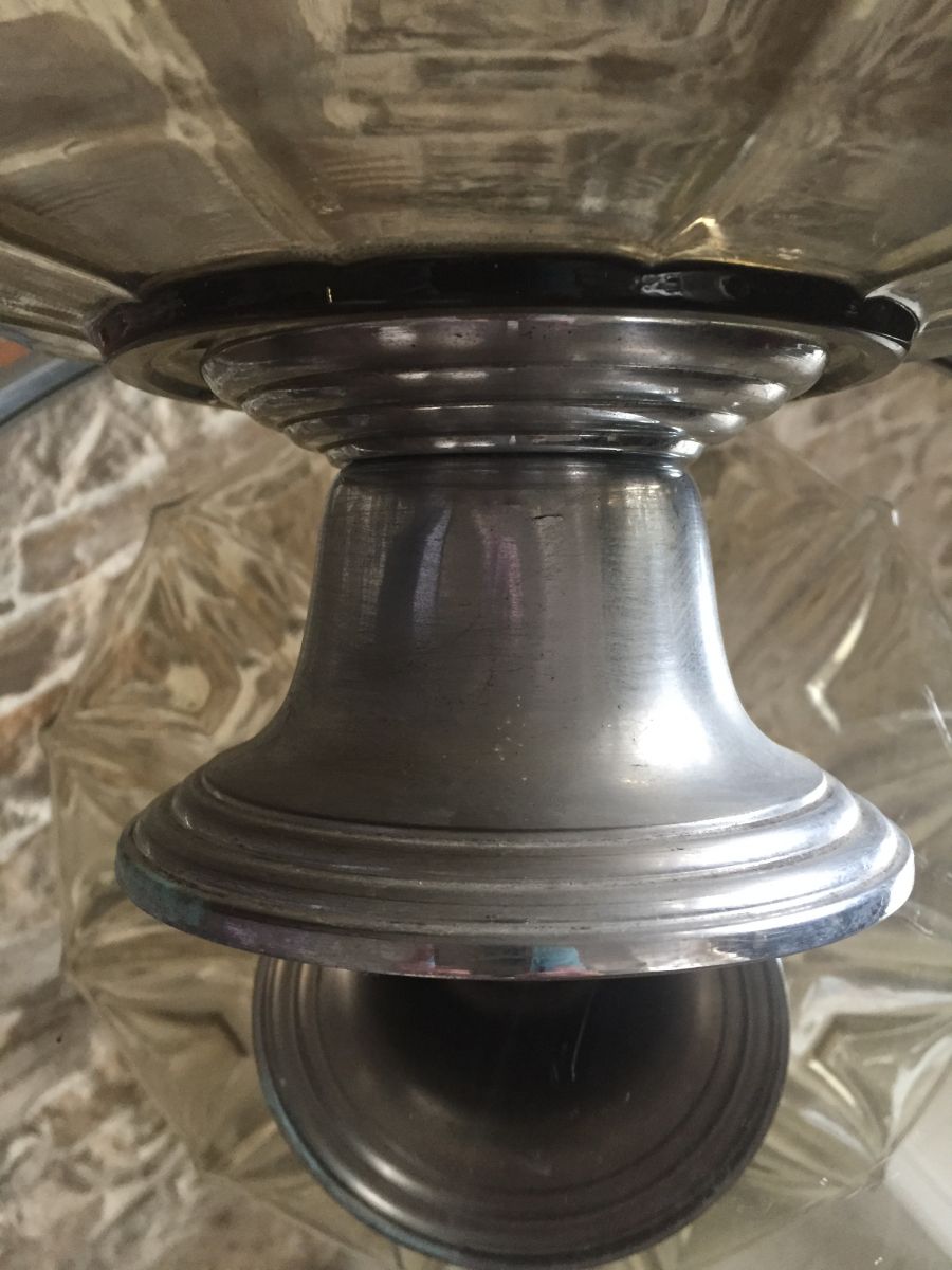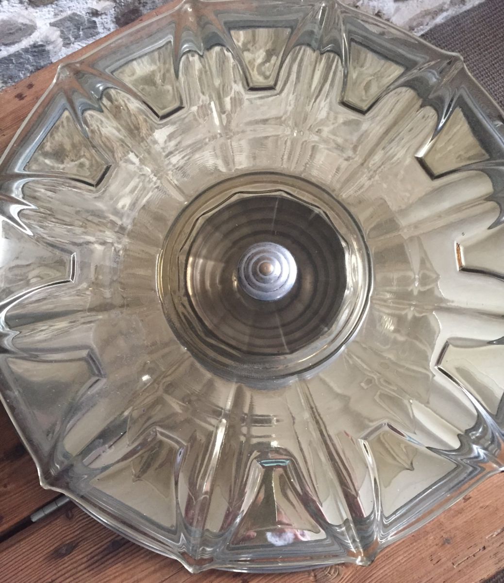 Jolie coupe de style Art Déco, verre marron ambré, pied en métal argenté, hauteur 10cm, diamètre 32cm, en bel état.
