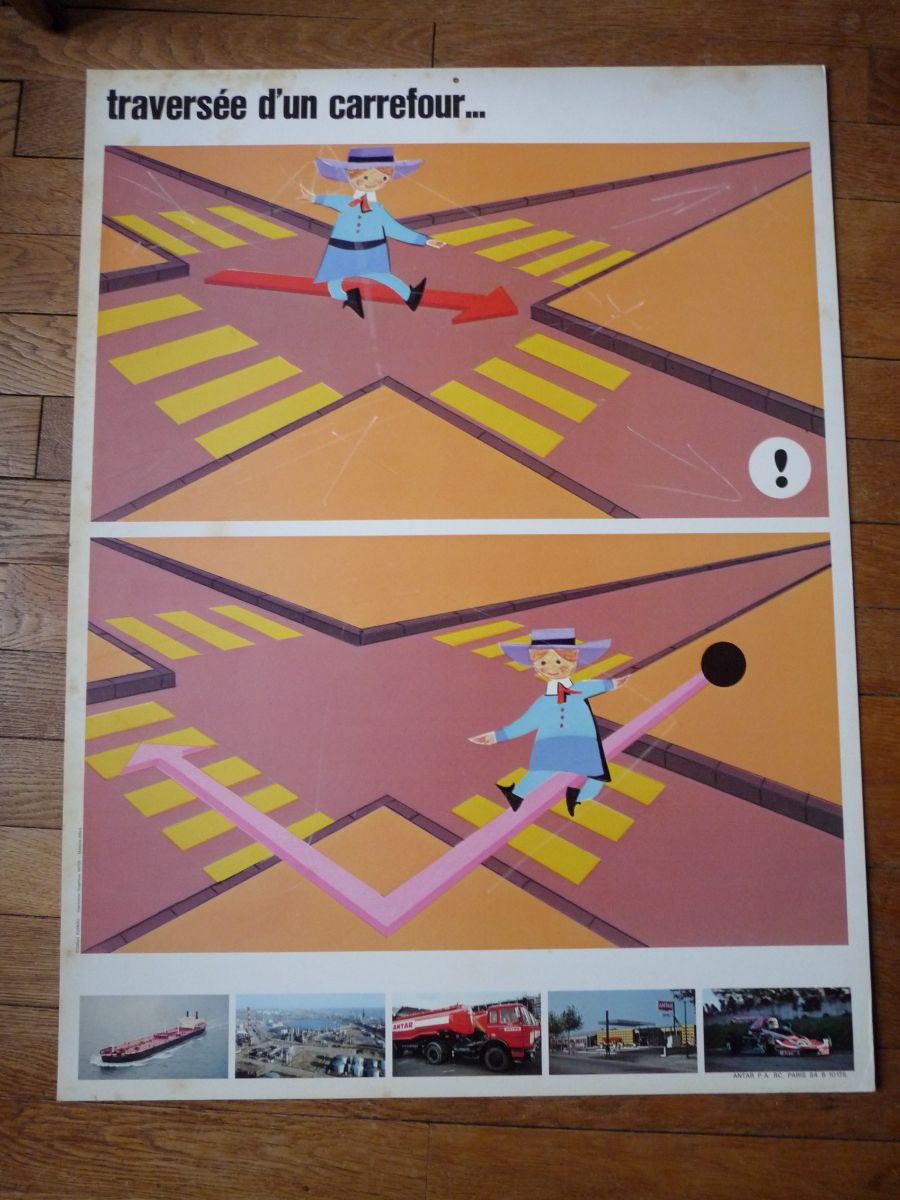 AFFICHE PEDAGOGIQUE OFFERTE PAR ANTAR AUX AUTO ECOLES ET ECOLES DANS LES ANNEES 60