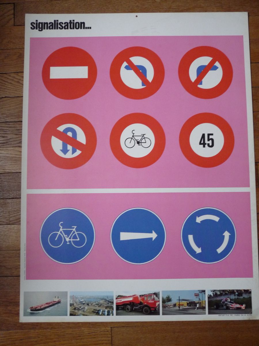 AFFICHE PEDAGOGIQUE OFFERTE PAR ANTAR AUX AUTO ECOLES ET ECOLES DANS LES ANNEES 60