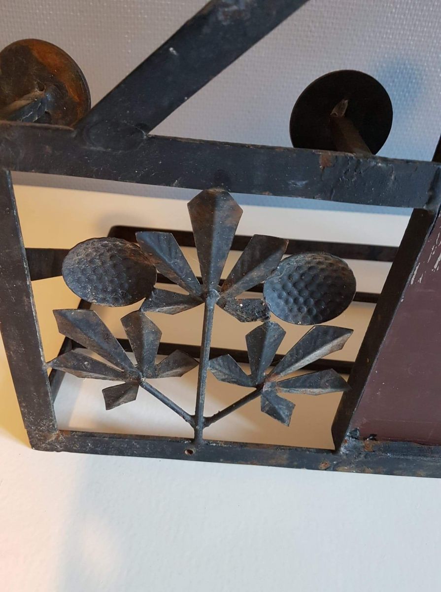 vestiaire art déco fer forgé martelé avec miroir 7 patères