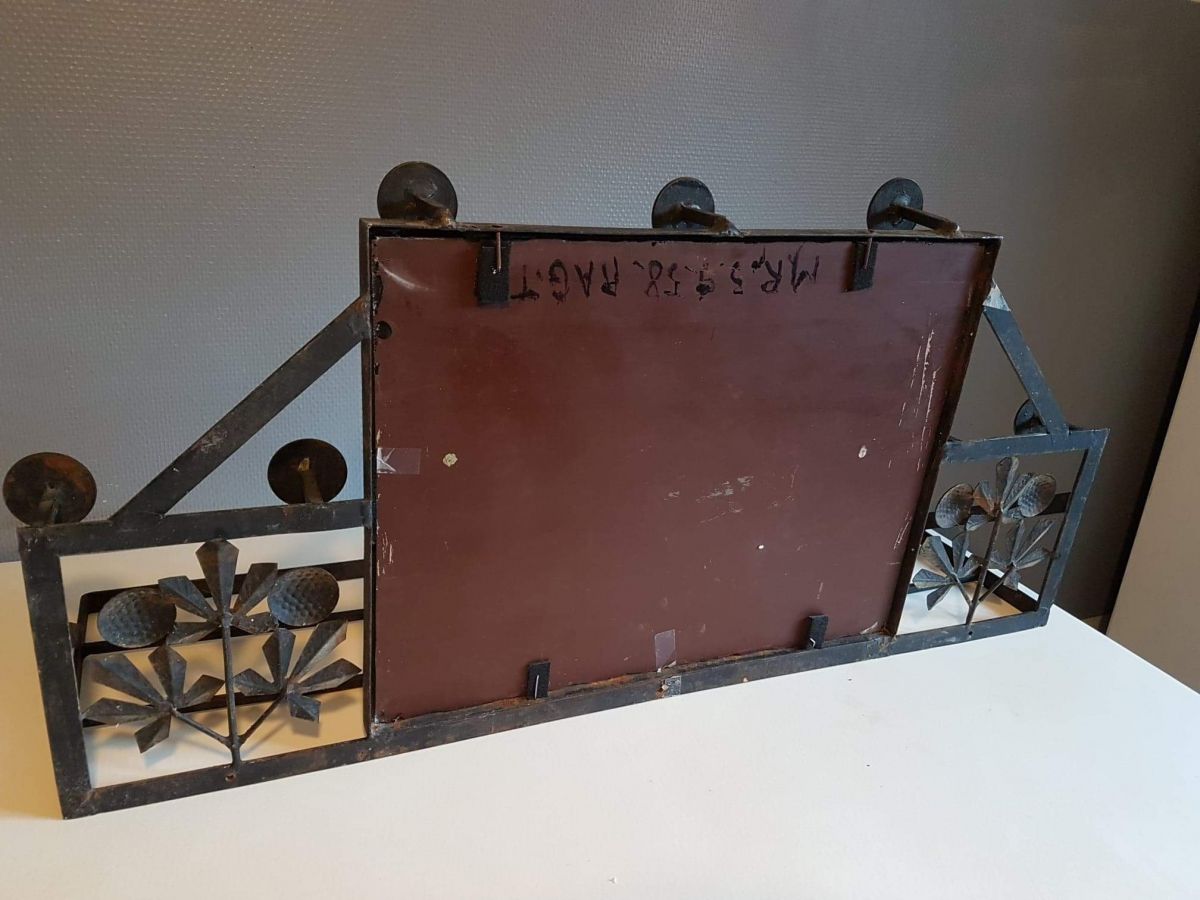 vestiaire art déco mural en fer forgé martelé avec miroir et 7 patères