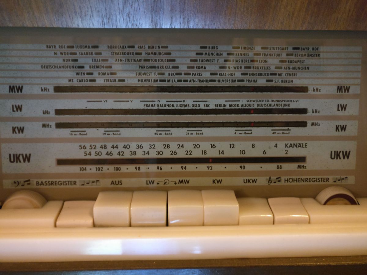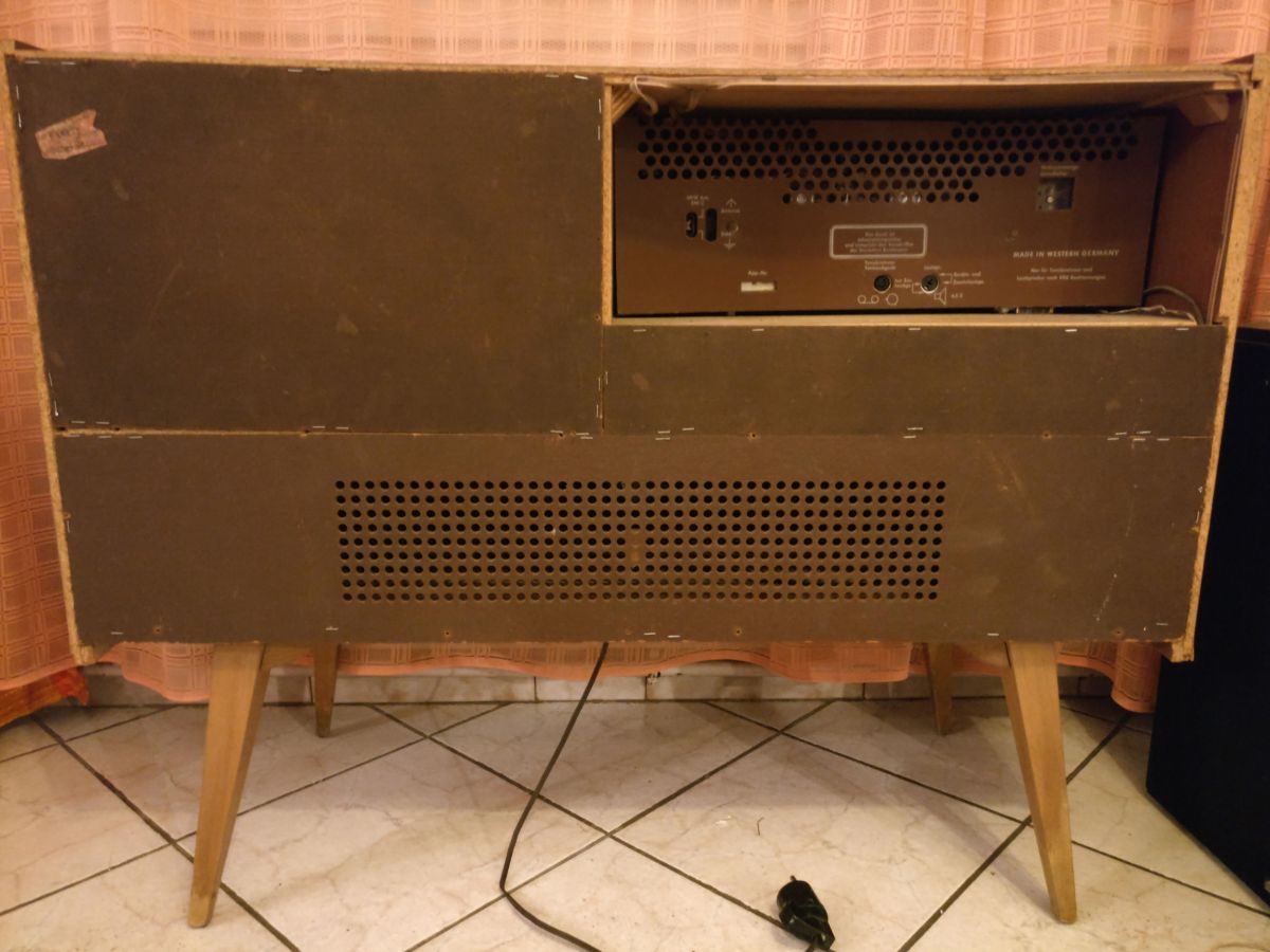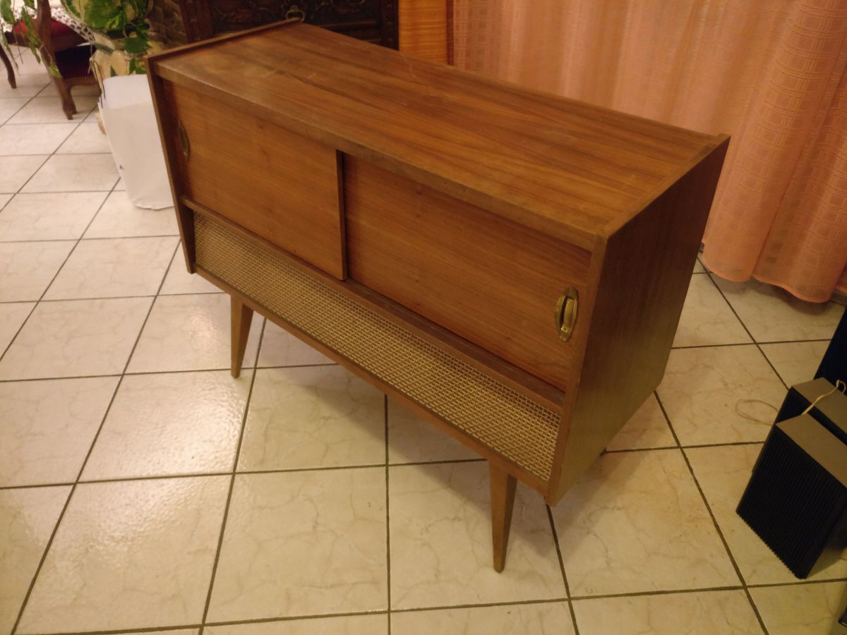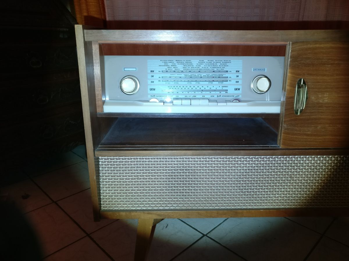La radio est entièrement fonctionnelle et tout est d'origine. L'état est bon, le meuble tient bien, ne grince pas, les petites portes coulissantes fonctionnent à merveilles (sans avoir mis d'huile ou autre produit).