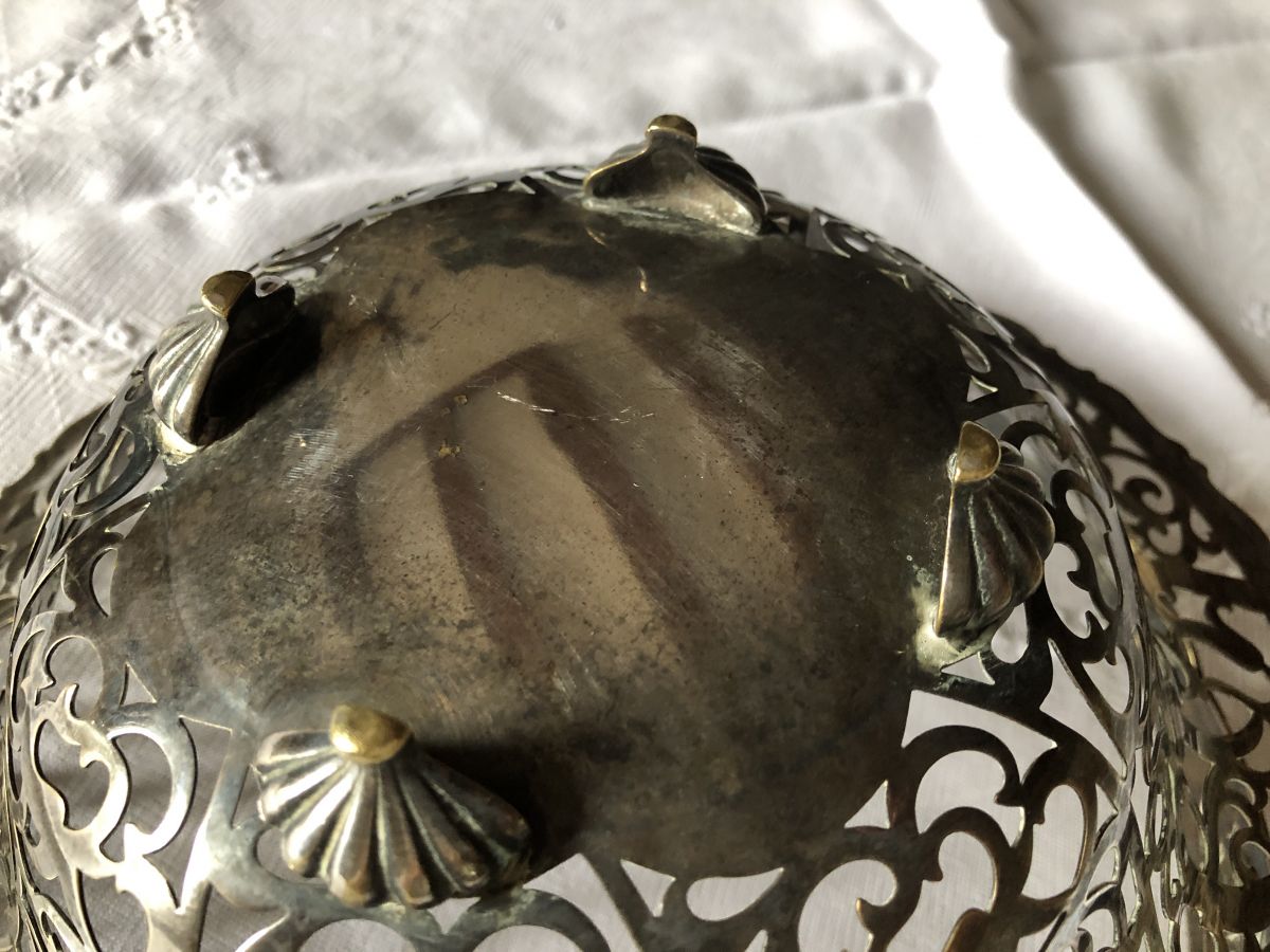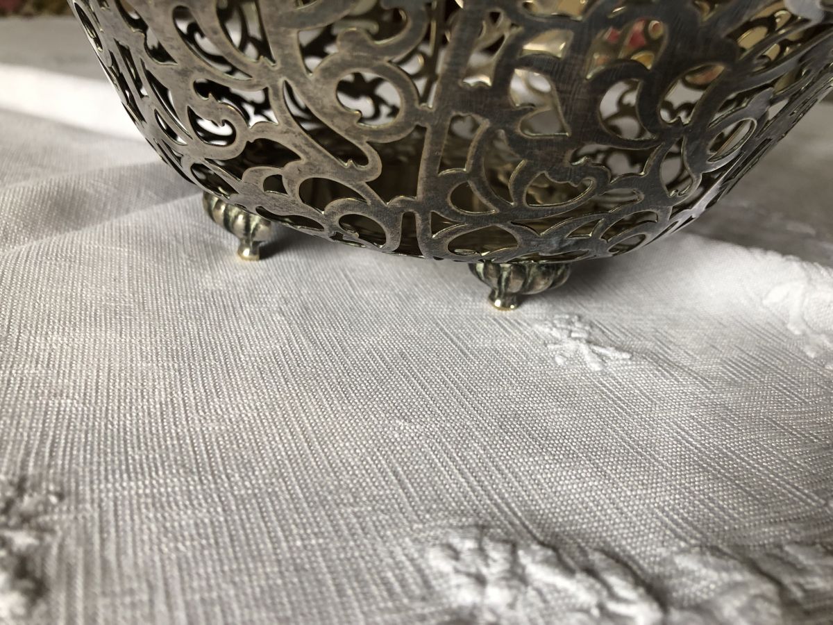 Élégante et très décorative cette corbeille en métal argenté ajouré bien campée sur ses quatre pieds mettra en valeur les fruits que vous servirez à votre table.