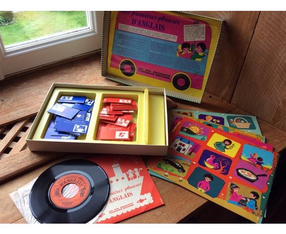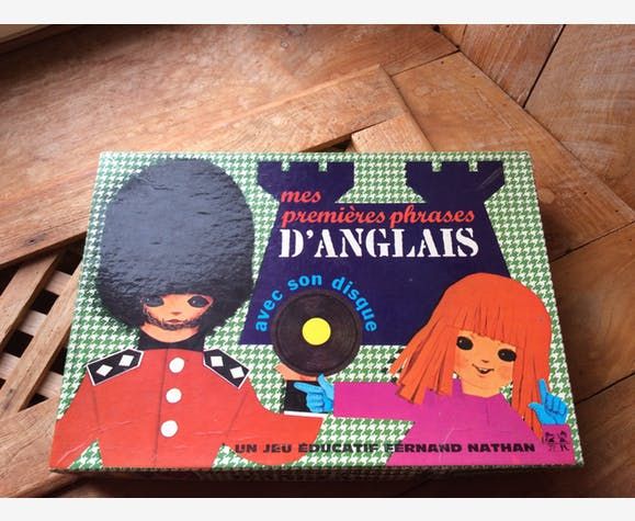 A partir de 6 ans.Pour apprendre ou reviser l'anglais. Super vintage, en excellent état. Pensez au tour disque, ou mange disque pour lire le 45t.