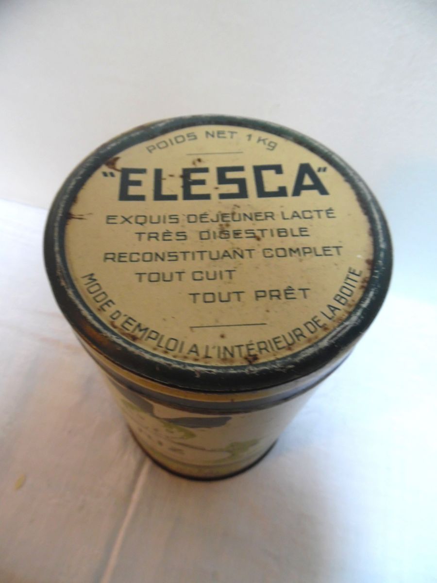 jolie boite ancienne de collection elesca petit déjeuner lacté,quelques traces d'antan, année 50