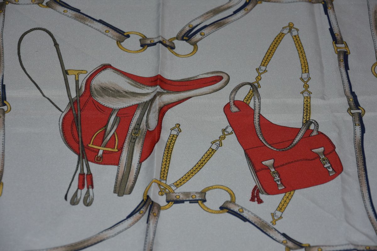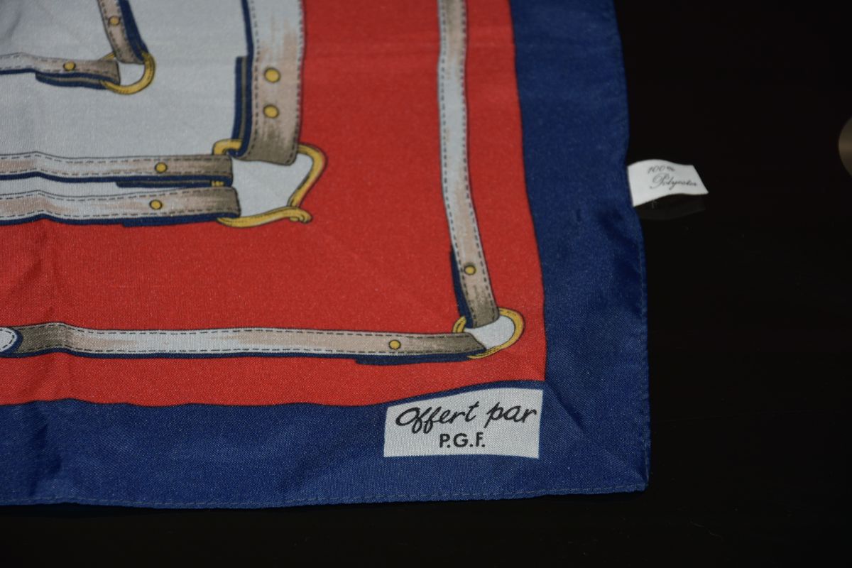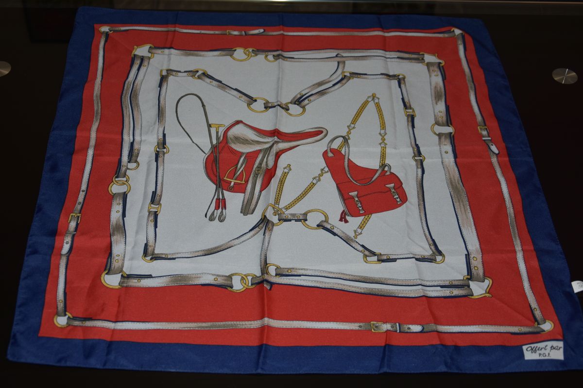 Authentique foulard vintage d'hôtesse de l'Air mention offert par PGF Perpignan motif équestre 100% polyester légères traces d'utilisation il a été porté depuis les années 60