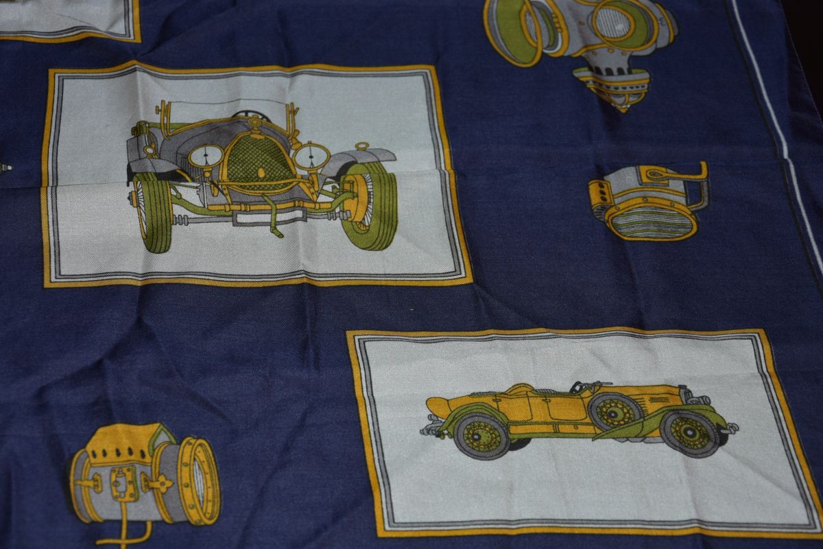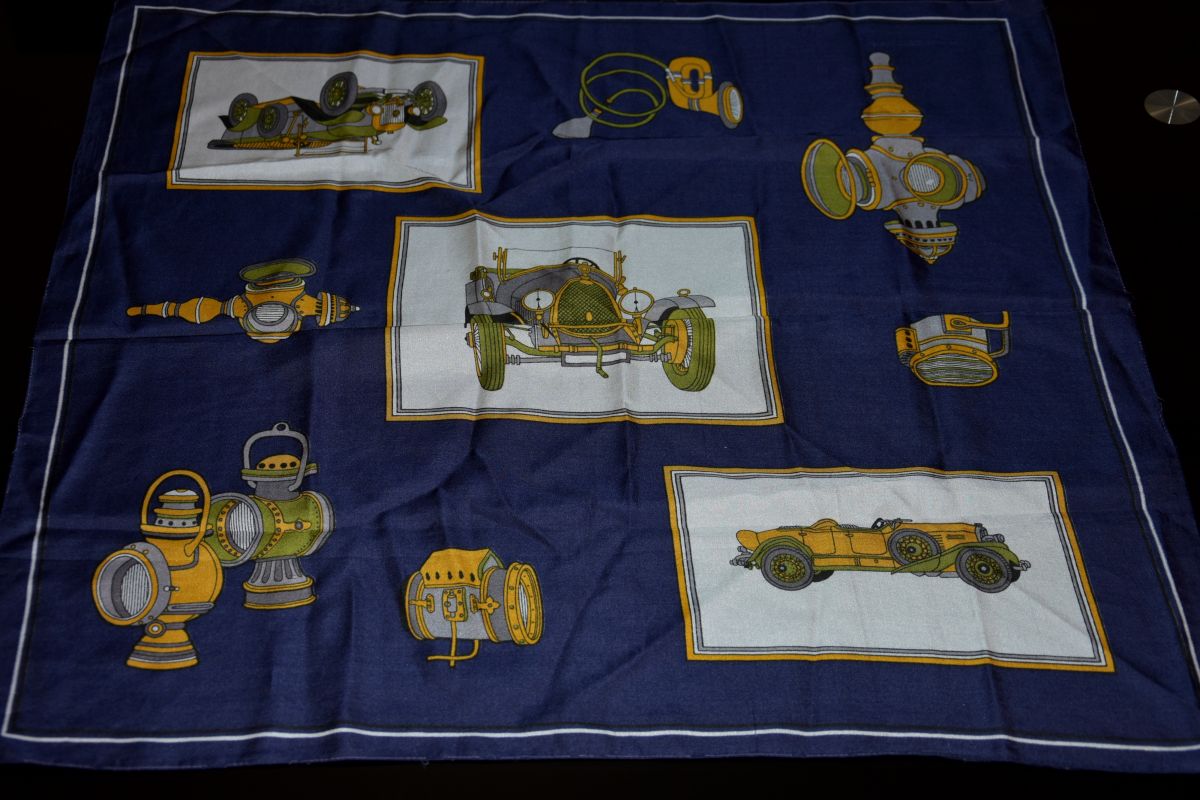 Très élégant foulard vintage pas d'étiquette polyester 68,5x67,5cm quelques traces d'usure sur les fils de coté vu son âge certainement porté depuis les années 60 particulièrement élégant pour les concours d'élégance automobile