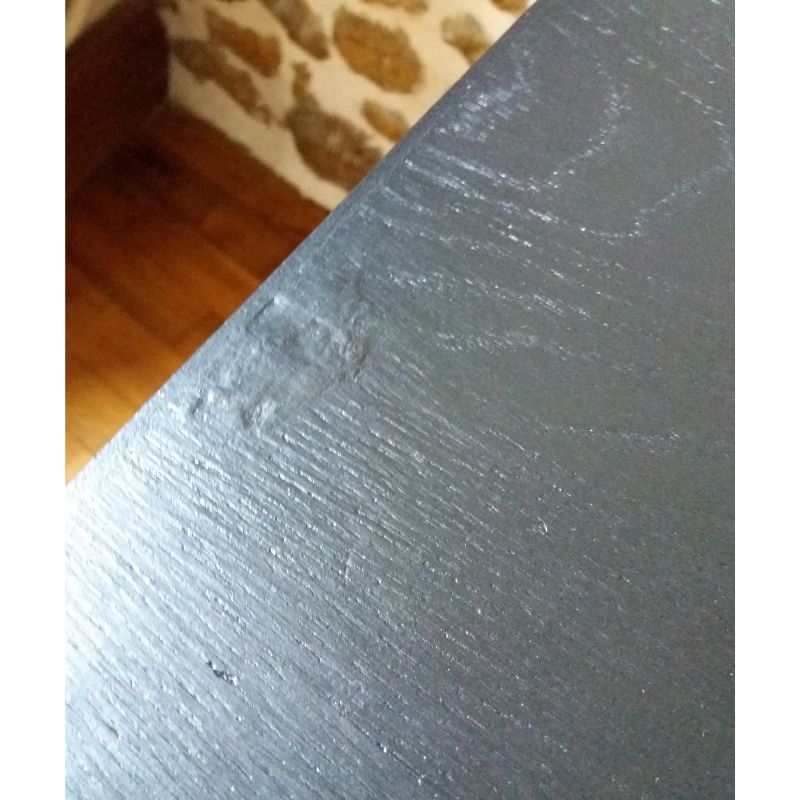 Travailleuse Vintage, elle a été complétement poncée puis repeinte avec différentes couleurs pour lui donner un coup de jeune. Les plateaux du dessus ainsi que les contours et le bas des pieds est de couleur black blue. L'intérieur est de 2 différentes teintes grises, le fond en jaune moutarde pour donner un coup de peps. Un vernis incolore mat a été mis sur l'ensemble de la travailleuse.
