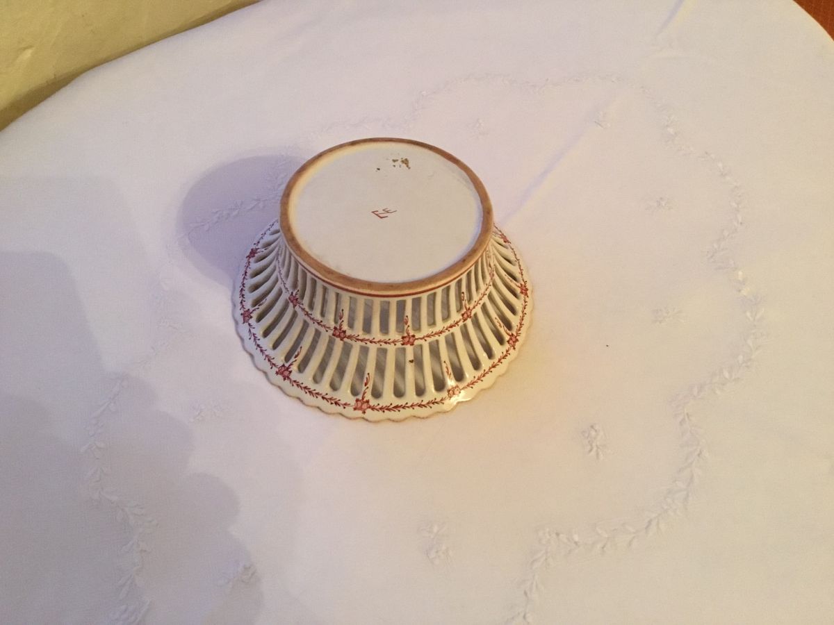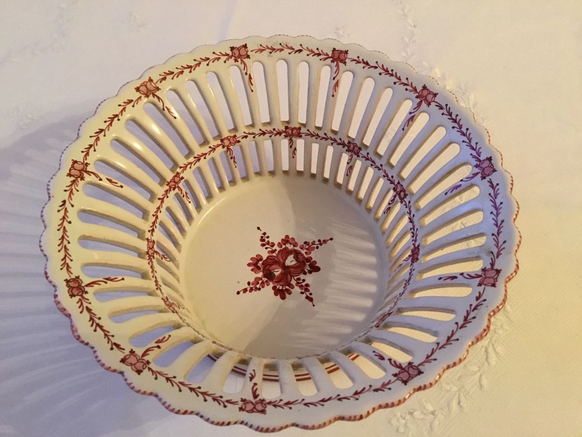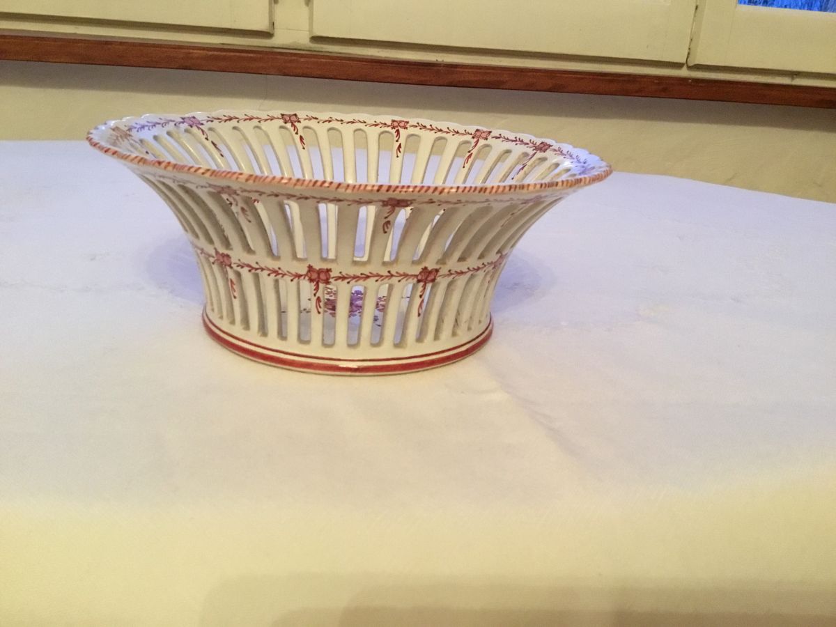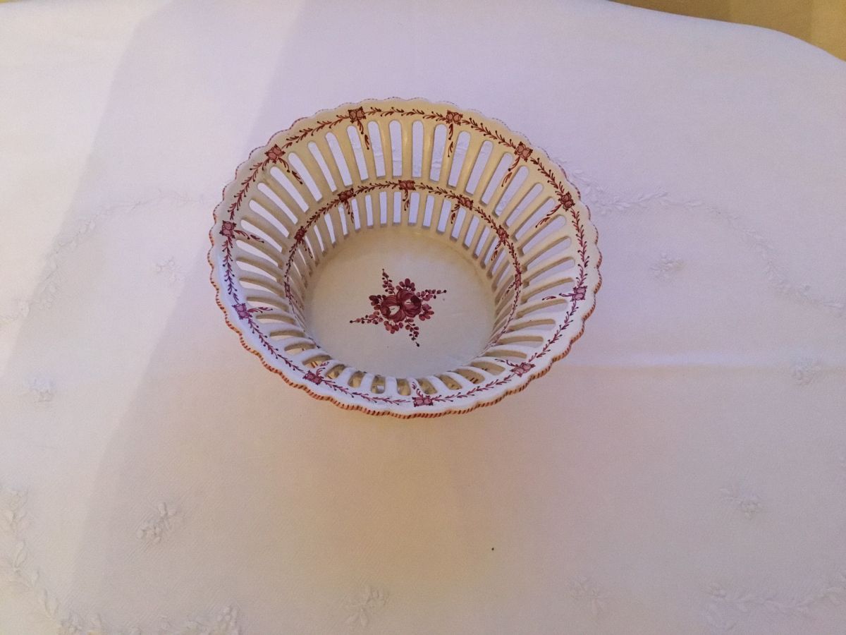 Cette élégante coupe à fruits est probablement en faïence de Moustiers. Elle est joliment ajourée et ne présente ni fêlures ni ébréchures.