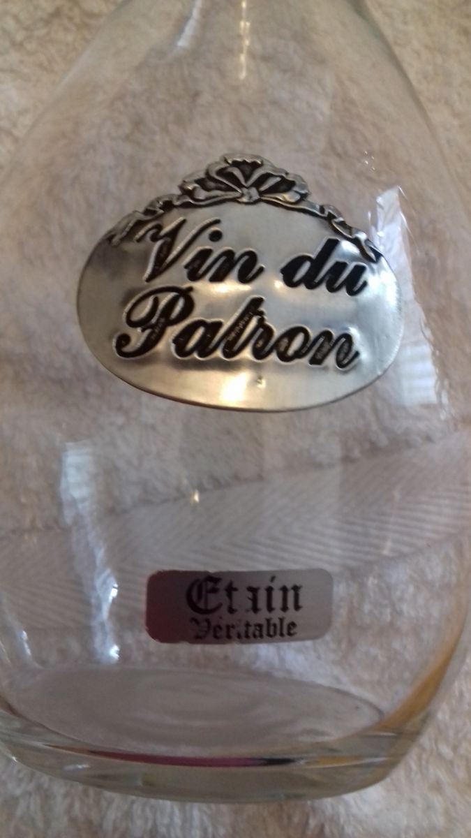 carafe avec inscription étain