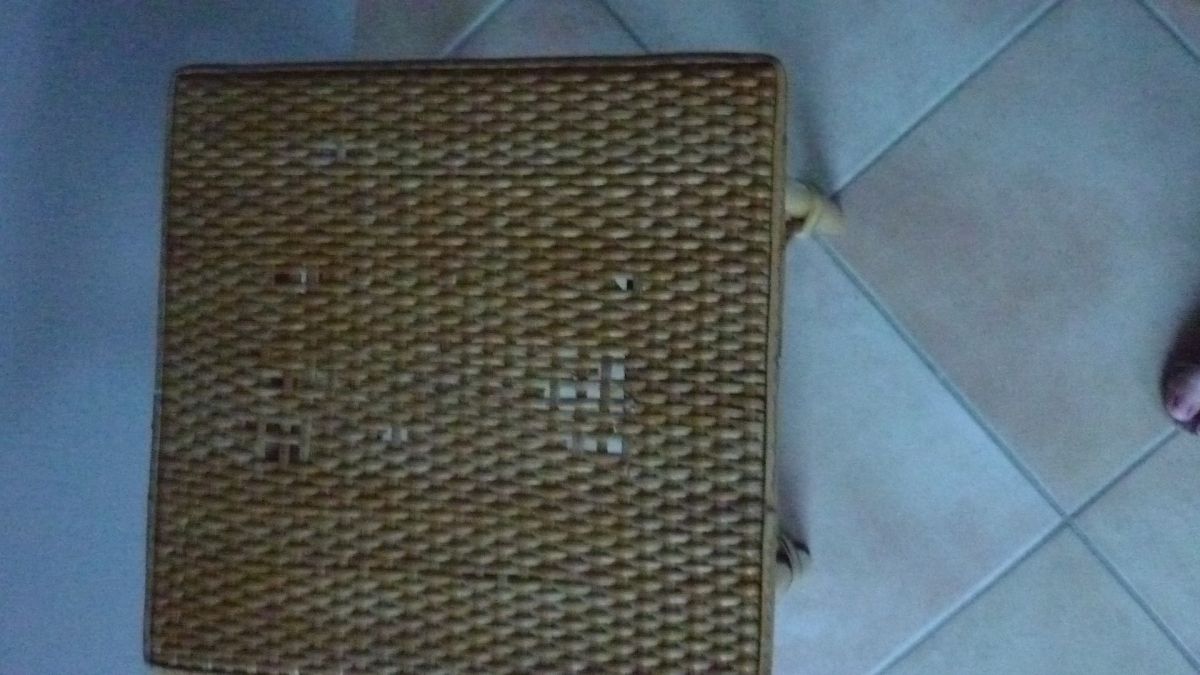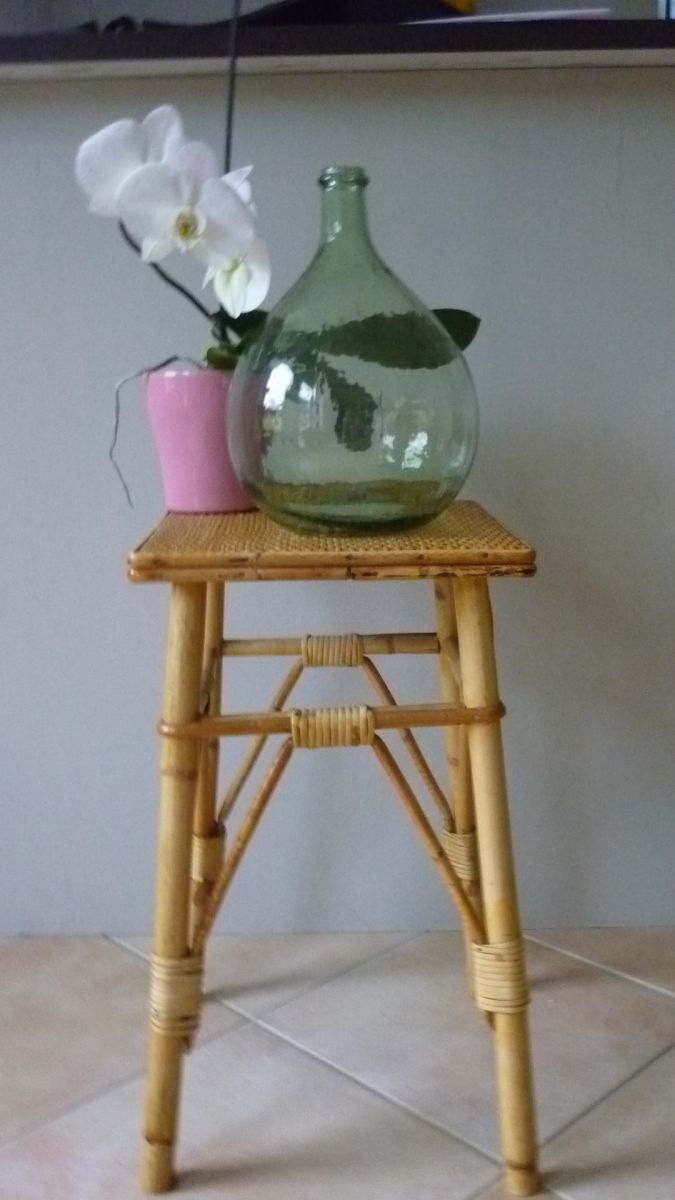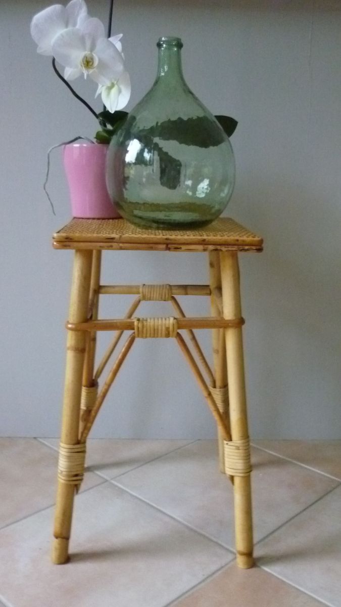Sellette en rotin en bon état (sauf traces du temps sur plateau -voir photo) d'une hauteur de 70 cm sur 30 cm environs)