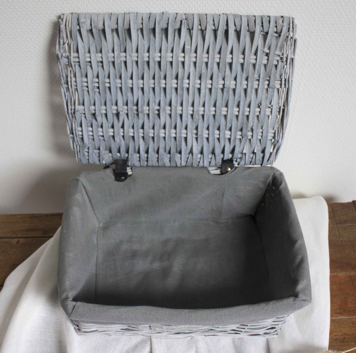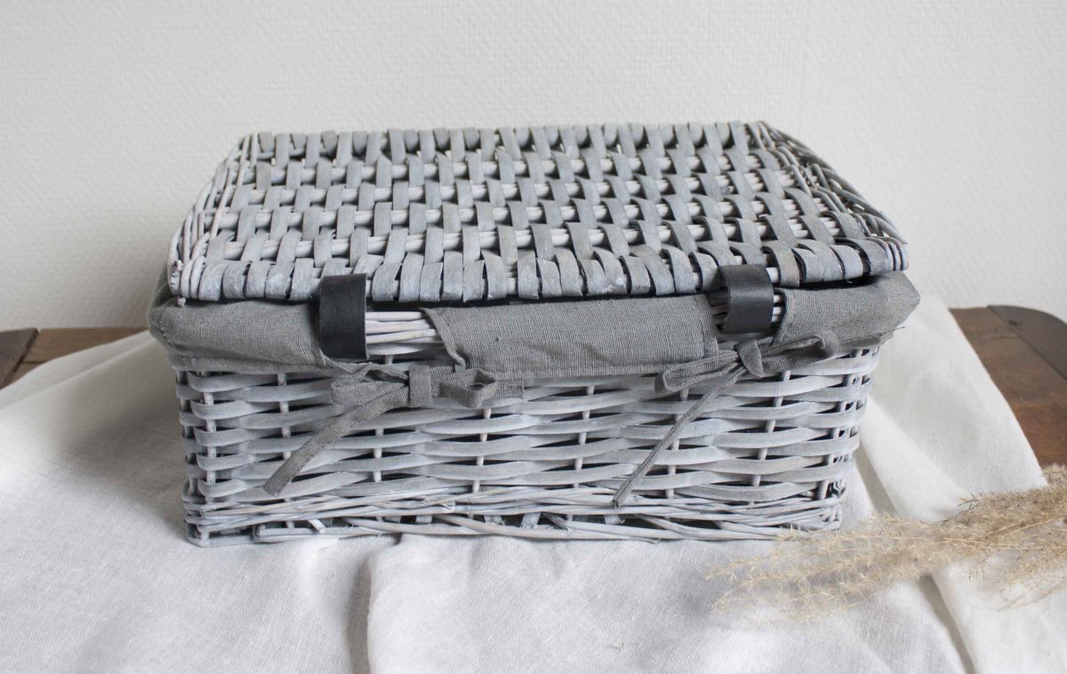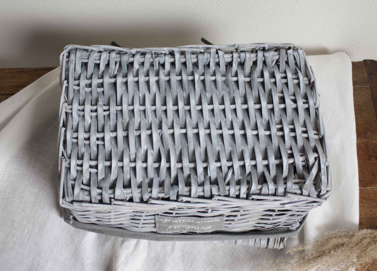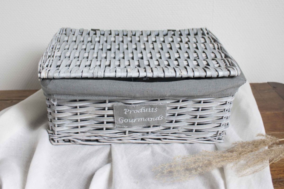 panier rotin avec couvercle blanchit