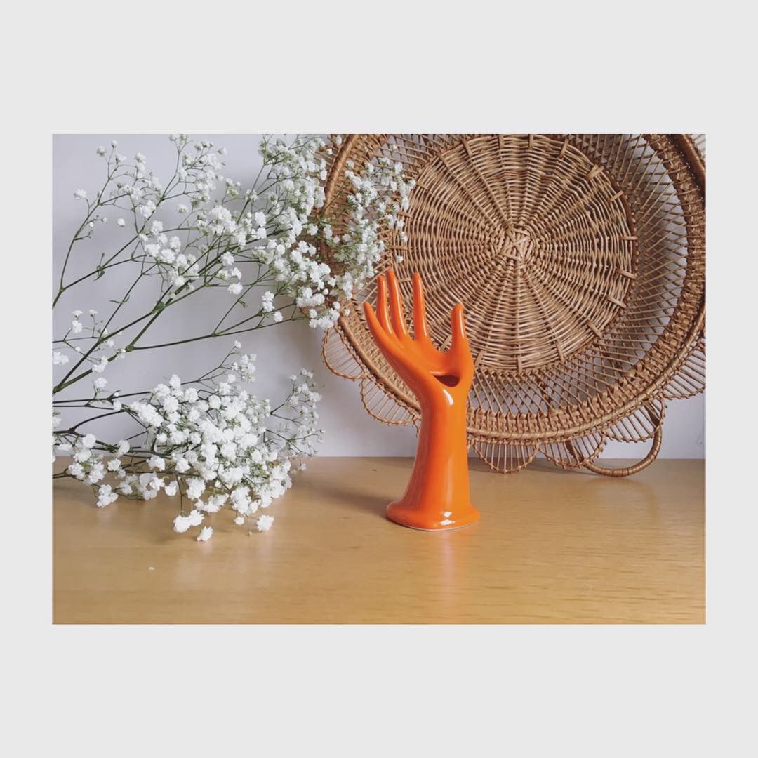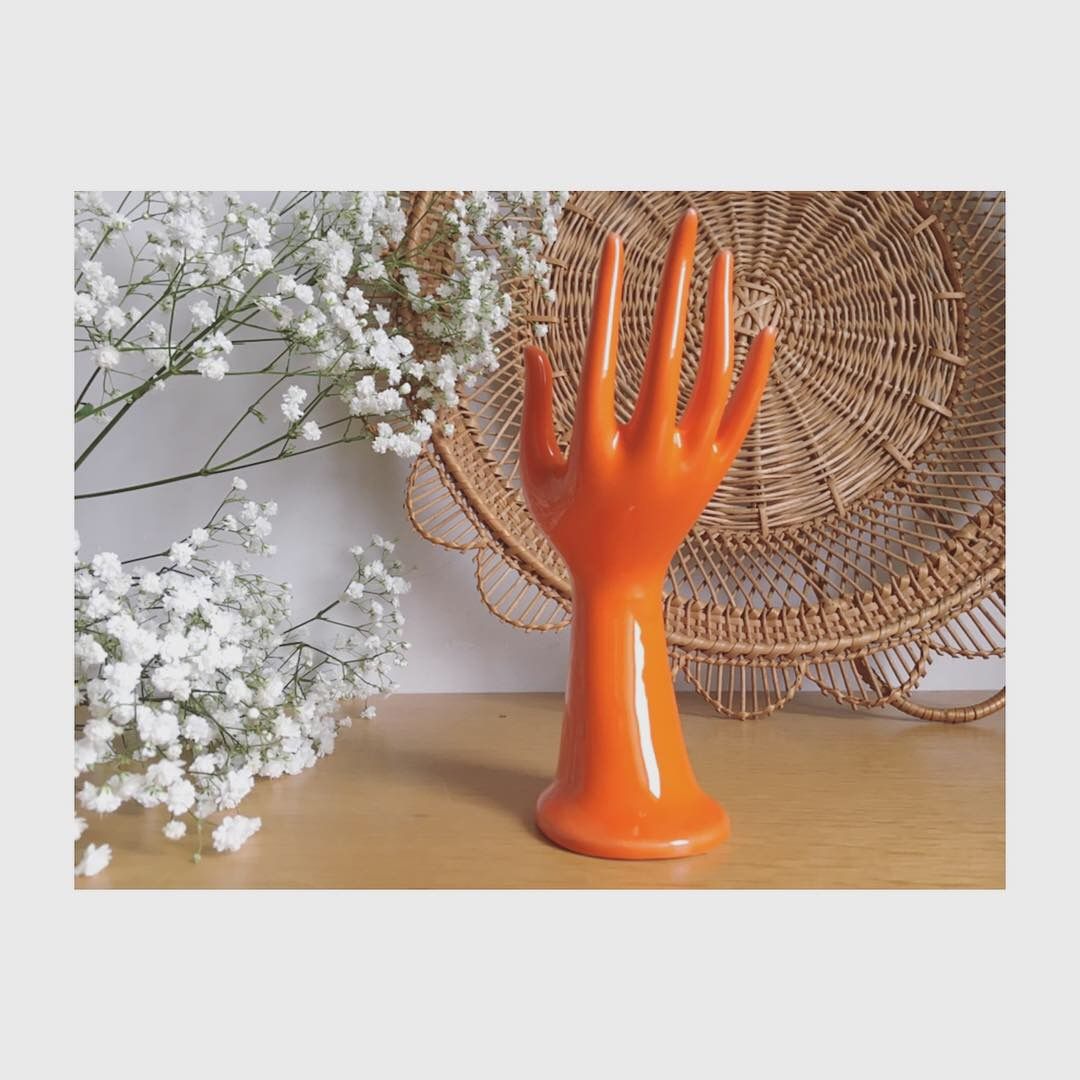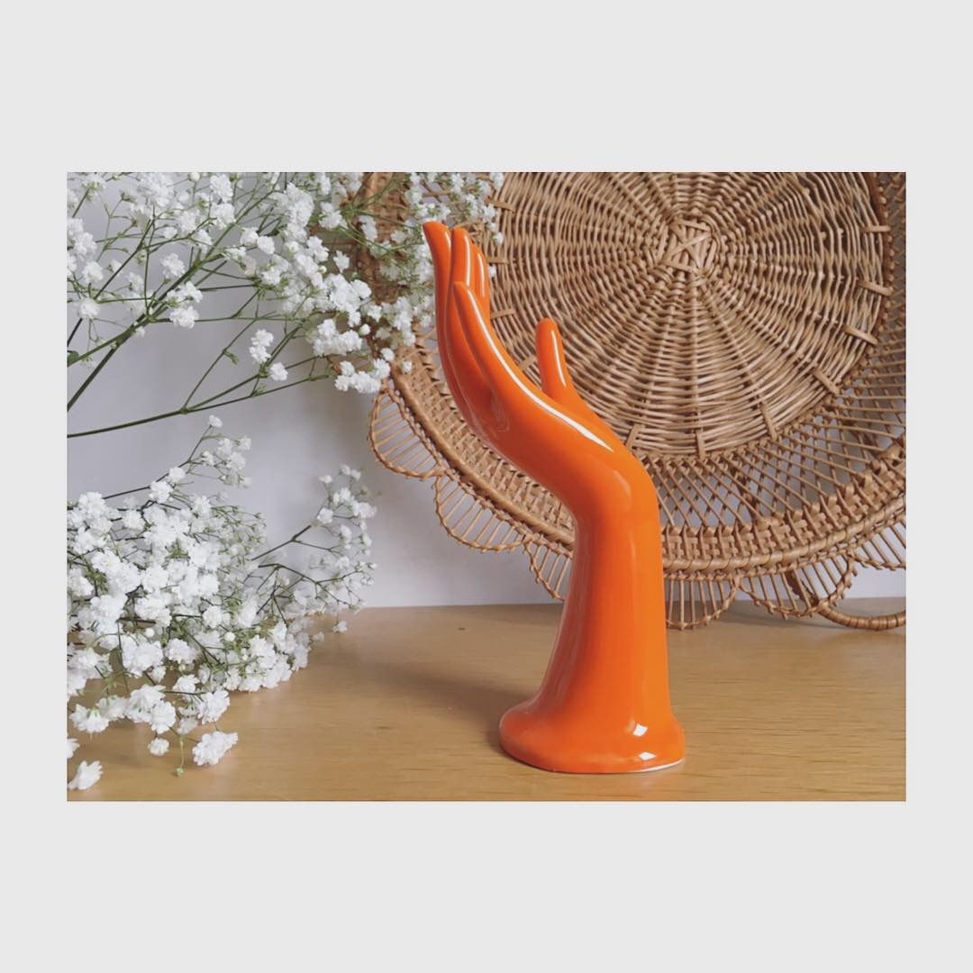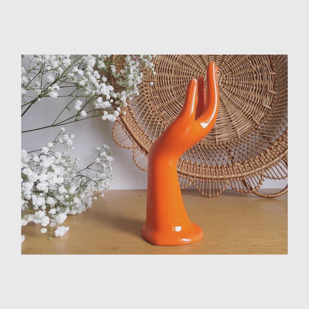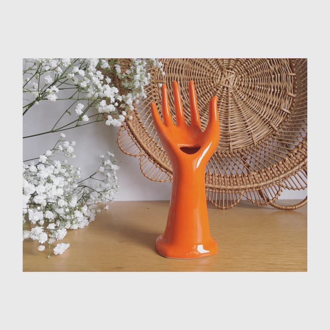 Avec sa couleur typique des années 70, cette main porte-bijoux ou soliflore en porcelaine est en bel état.