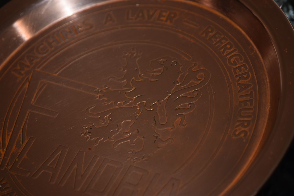 Très belle assiette publicitaire Flandria de Wattrelos en cuivre massif