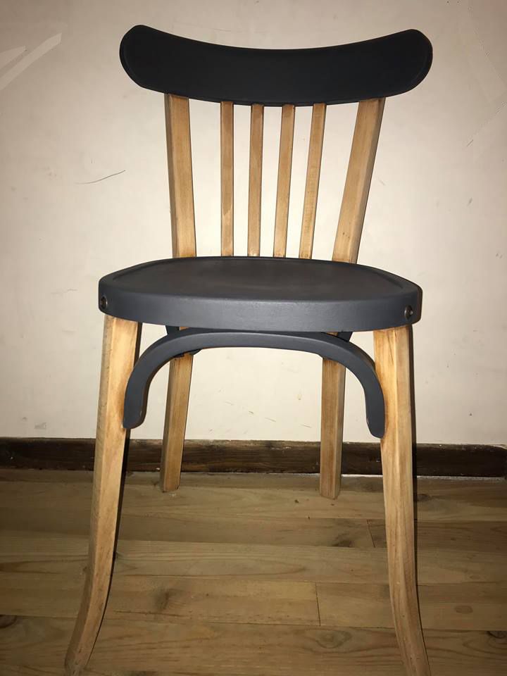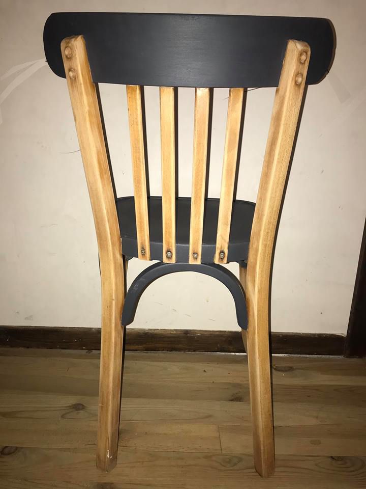 Chaise bistrot Luterma Relookée en gris effet vieilli dossier & assise . ce qui apporte un aspect "Shaby Chic" très chouette et chaleureux. . Le bois est en parfaite état . très robuste . Dimension Hauteur : 78cm Largeur: 37cm Profondeur : 39cm Hauteur Assise : 49,50cm