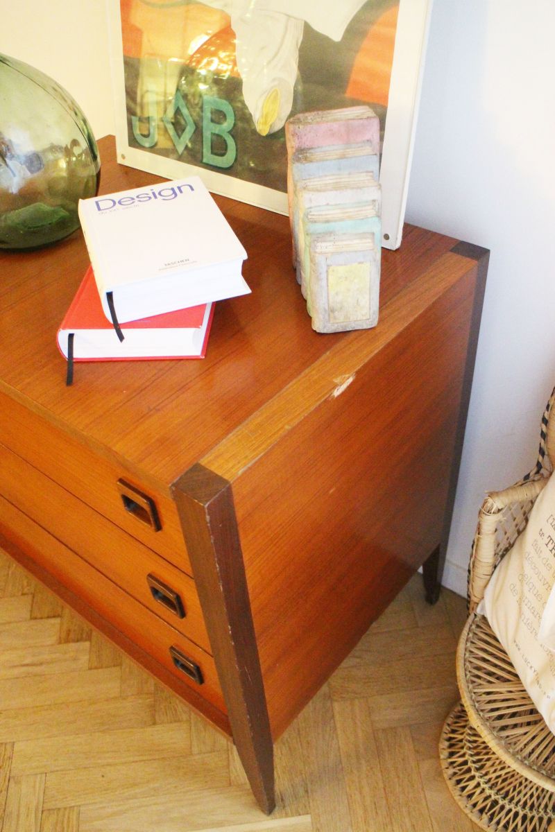 Très jolie large commode vintage de style scandinave des années 60.