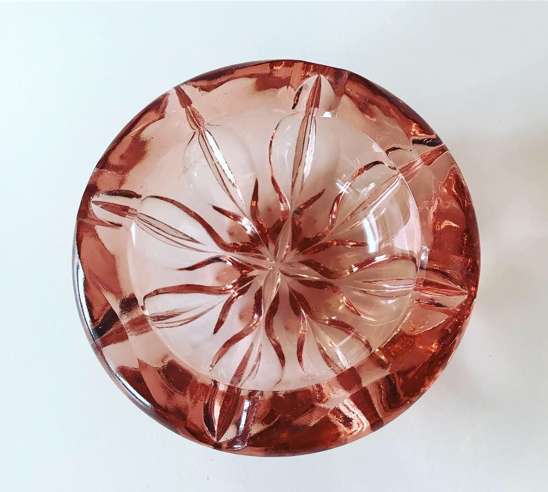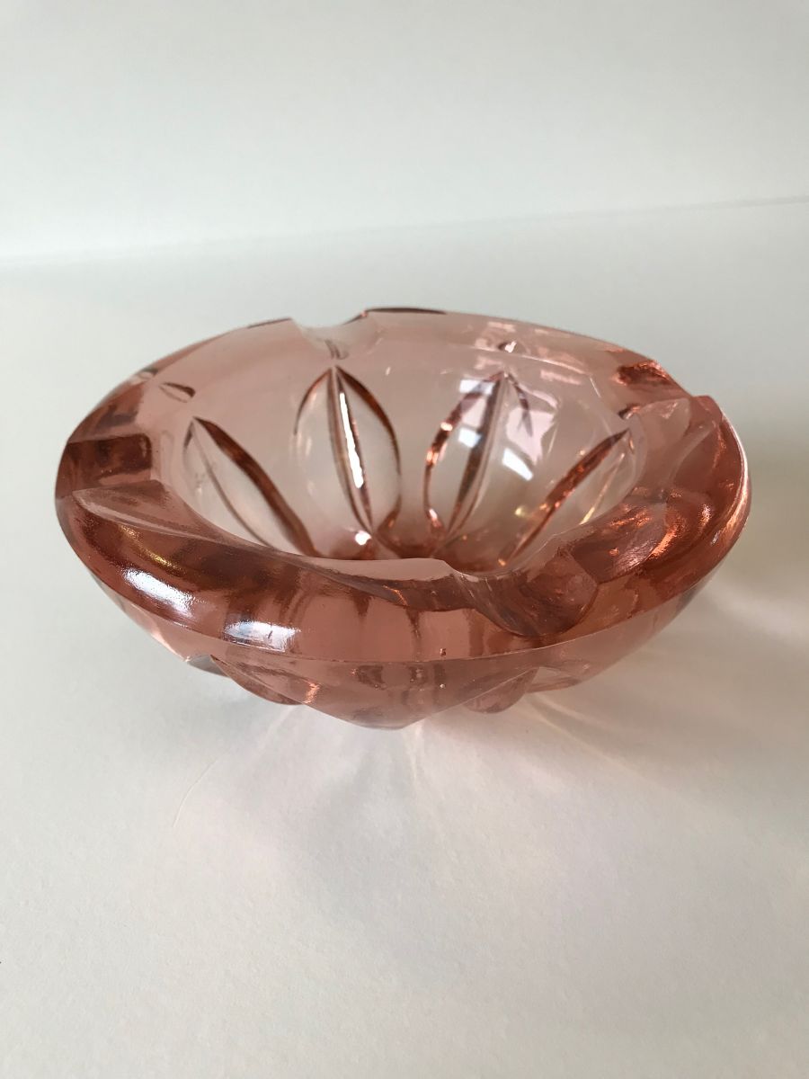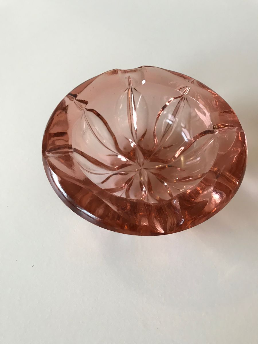Superbe cendrier vintage en verre moulé rose.