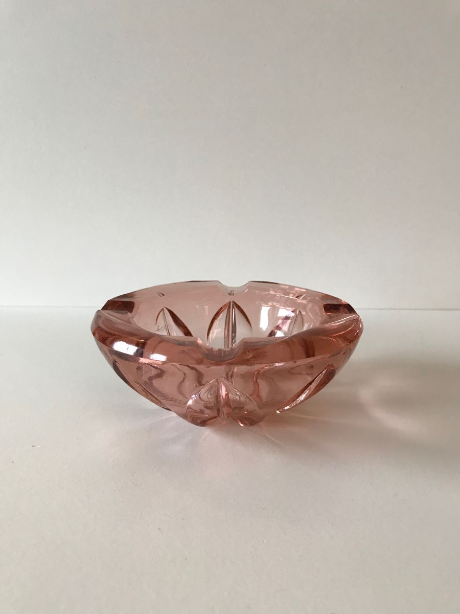 Vide poche ou cendrier vintage en verre moulé rose