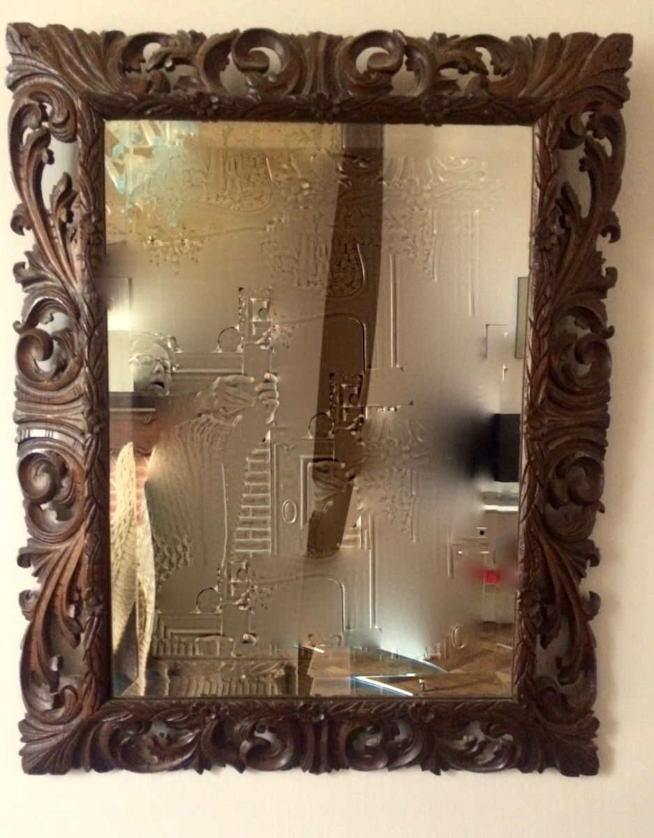 Magnifique miroir XIXéme en bois sculpté et verre biseauté. 70x86cm