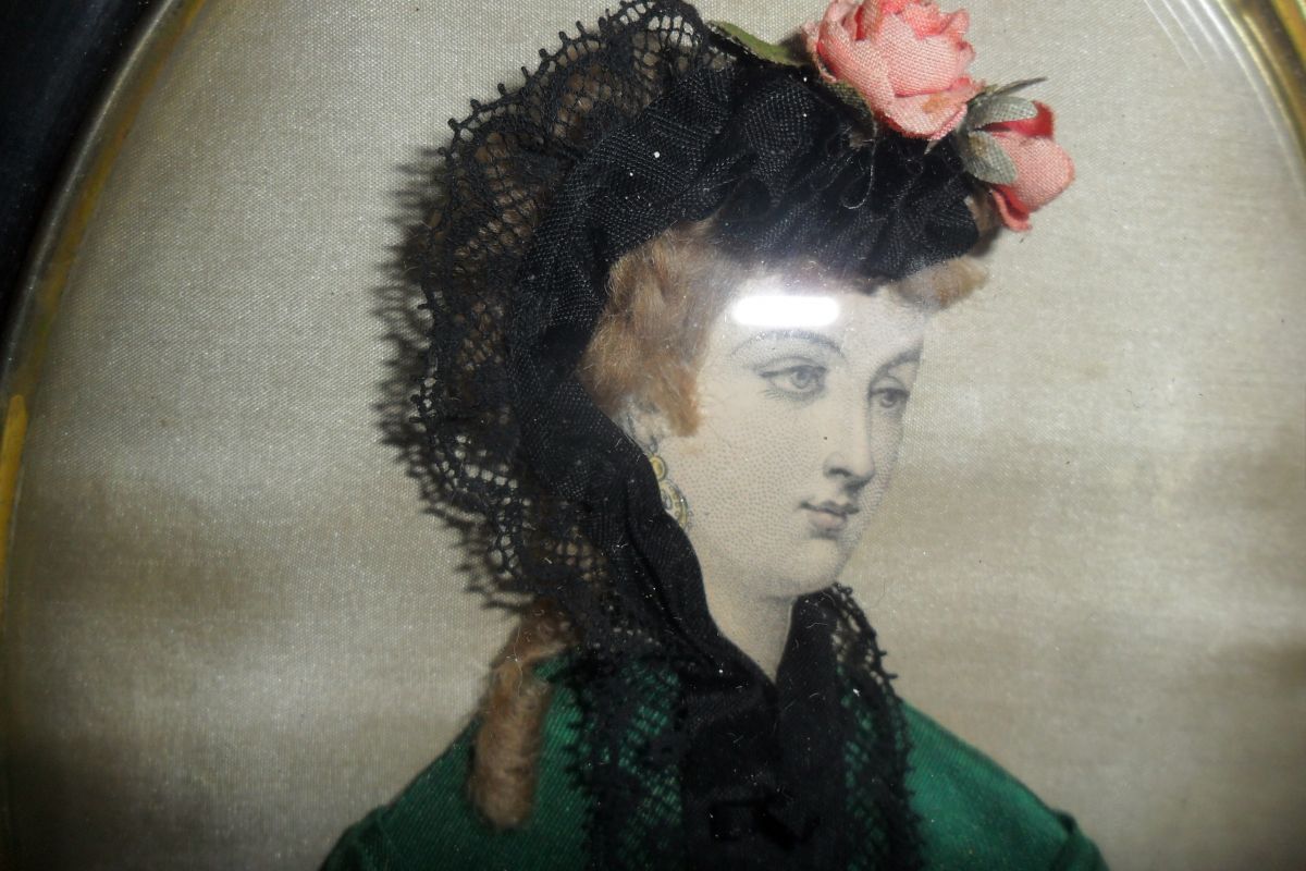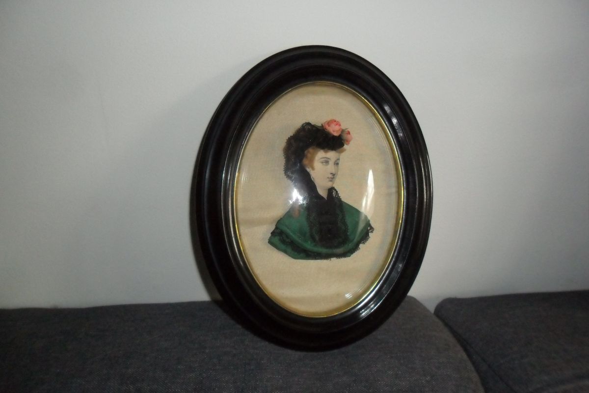 CADRE BOMBE OVALE GRAVURE BUSTE FEMME HABILLEE