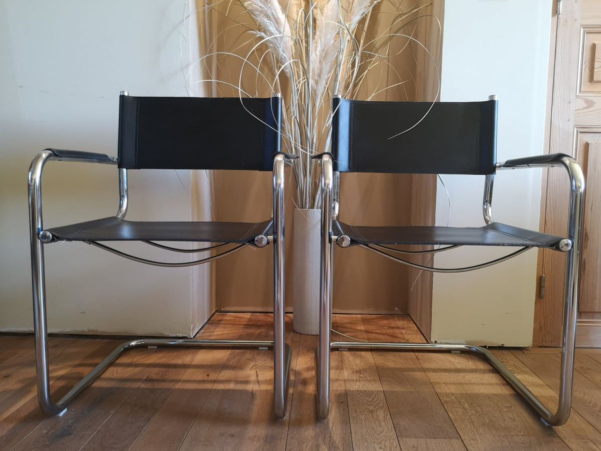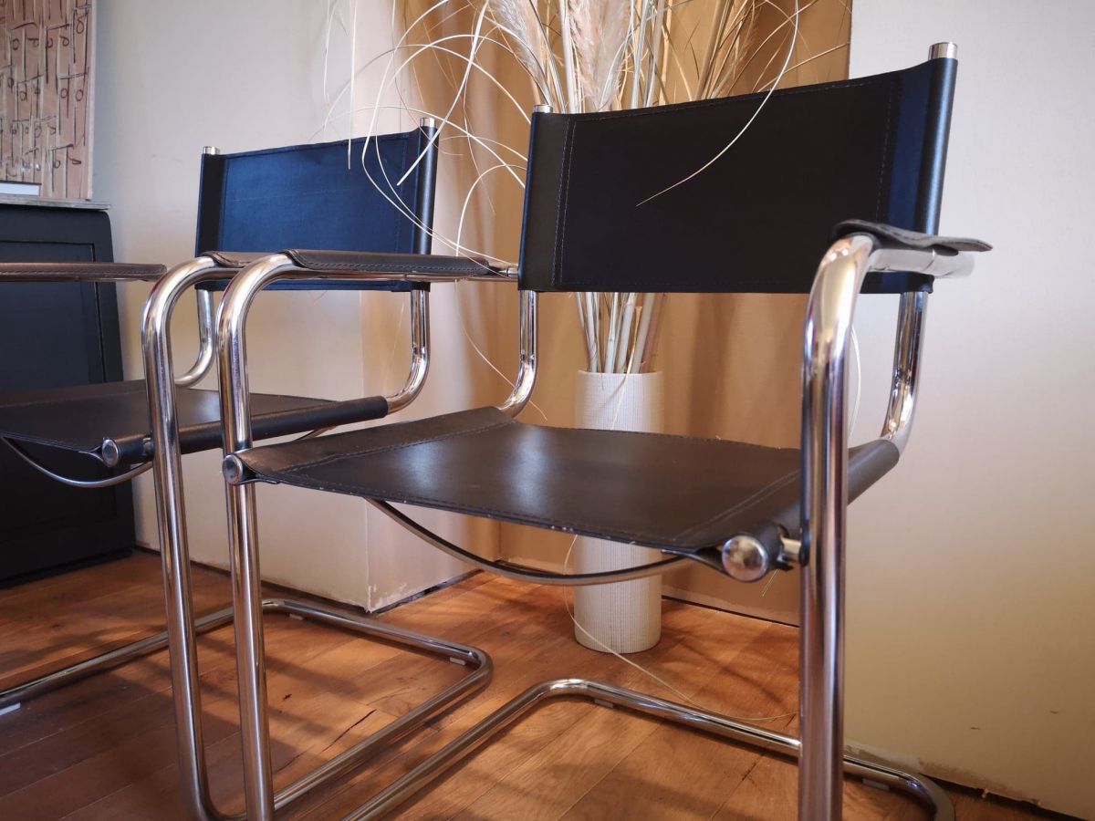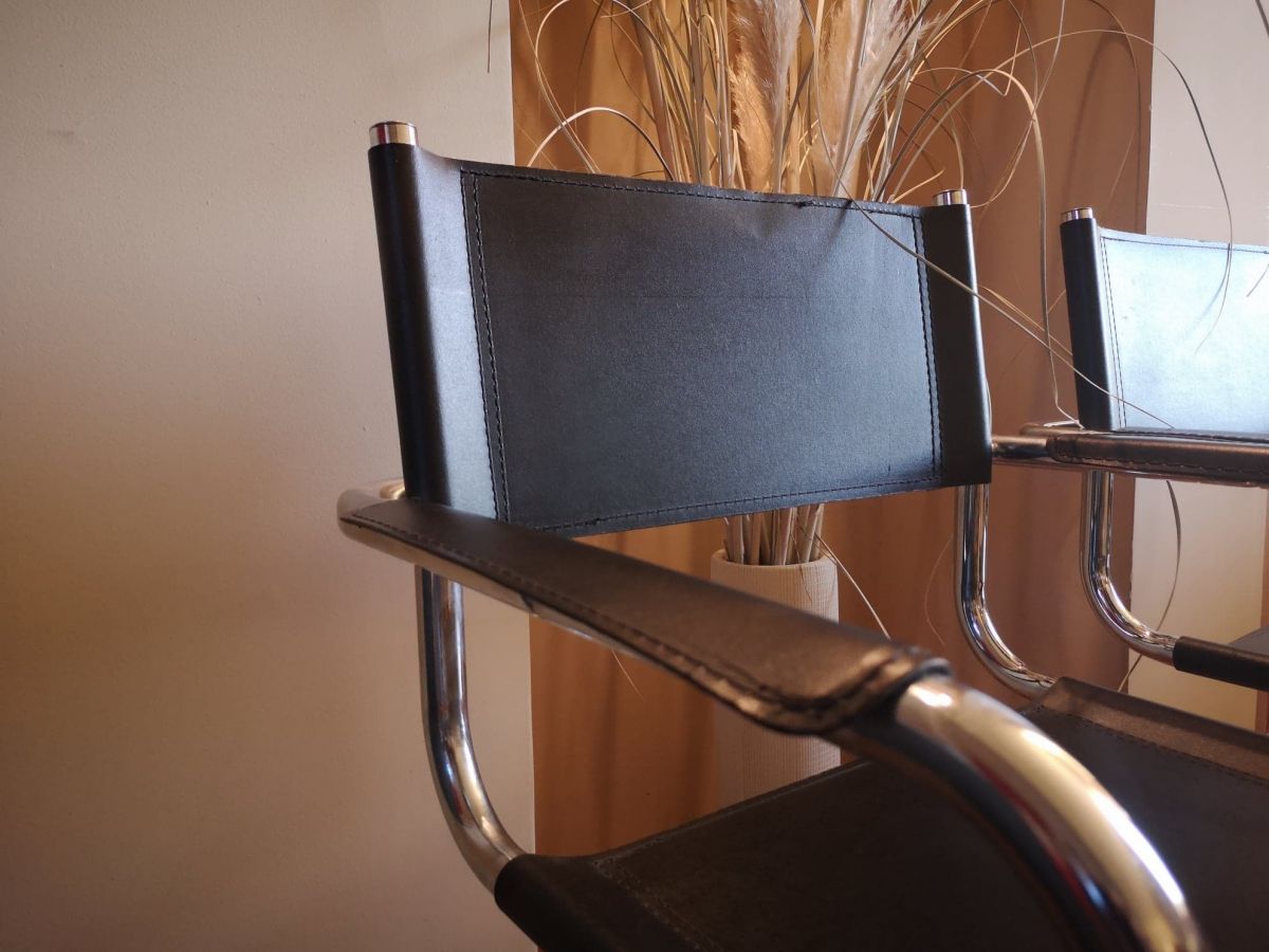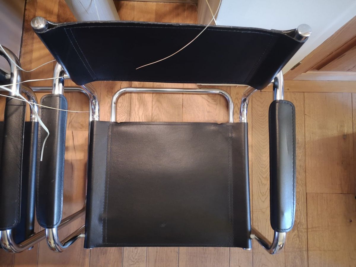 Les deux fauteuils ont été remis en état : brillance de l'acier et brillance du cuir.