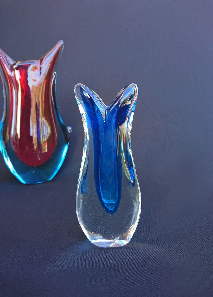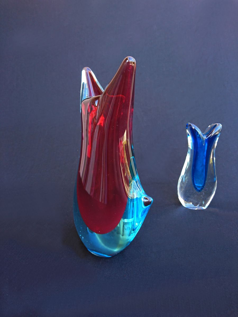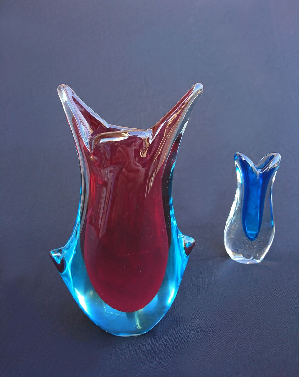 Deux superbes vases en verre de Murano (attribués), design dans le gout de Flavio Poli.