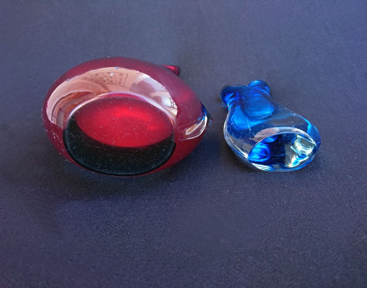 Le second, bleu marine et transparent, est composé d'un col séparé en deux parties arrondies.
