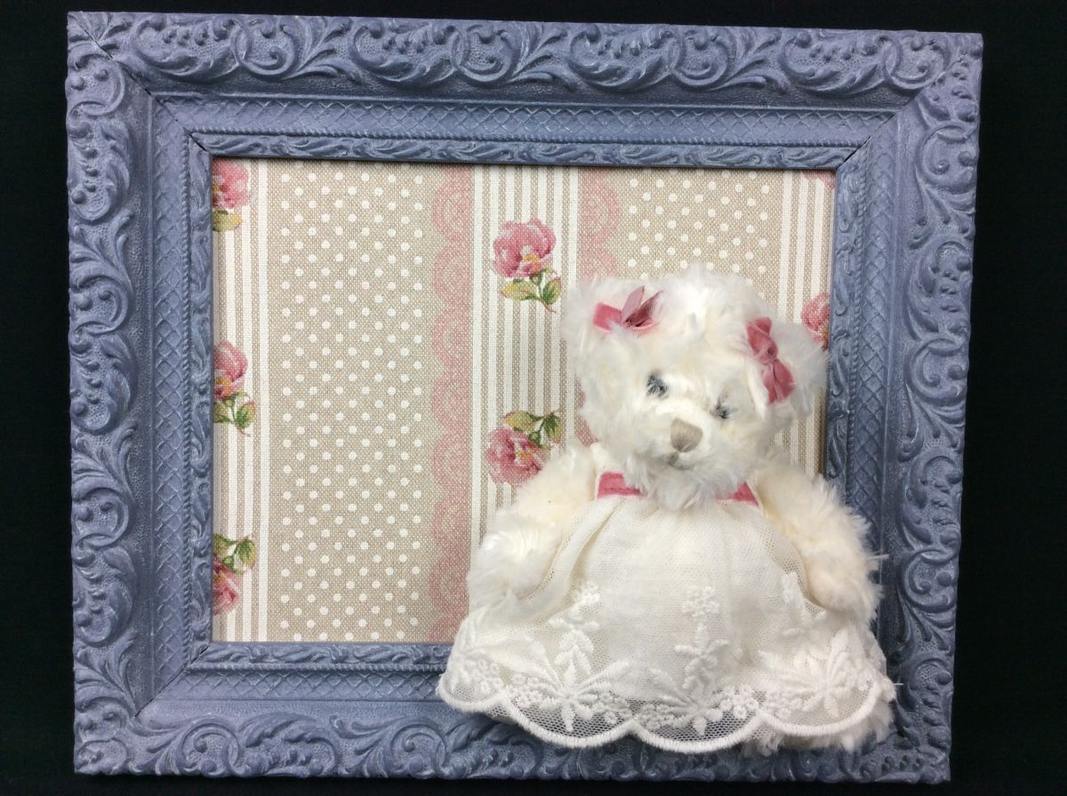cadre ancien patiné, déco peluche